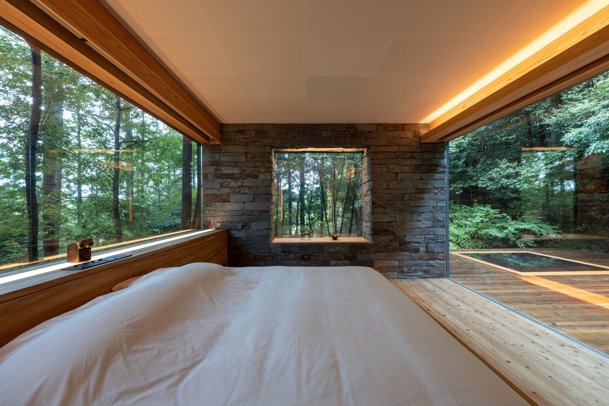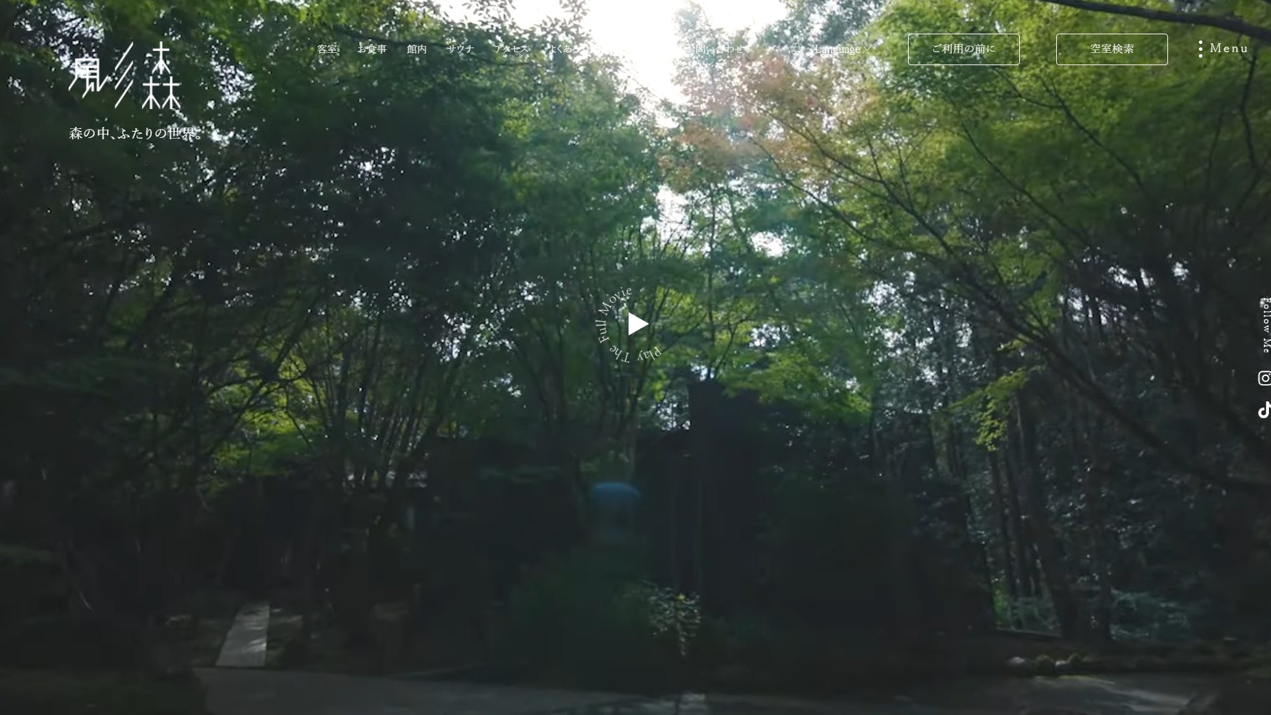 深い森に抱かれた、静寂の隠れ家。 二人だけのプライベート空間で、木々に囲まれ、誰にも邪魔されず、心ゆくまで贅沢な時間をお過ごしいただけます。