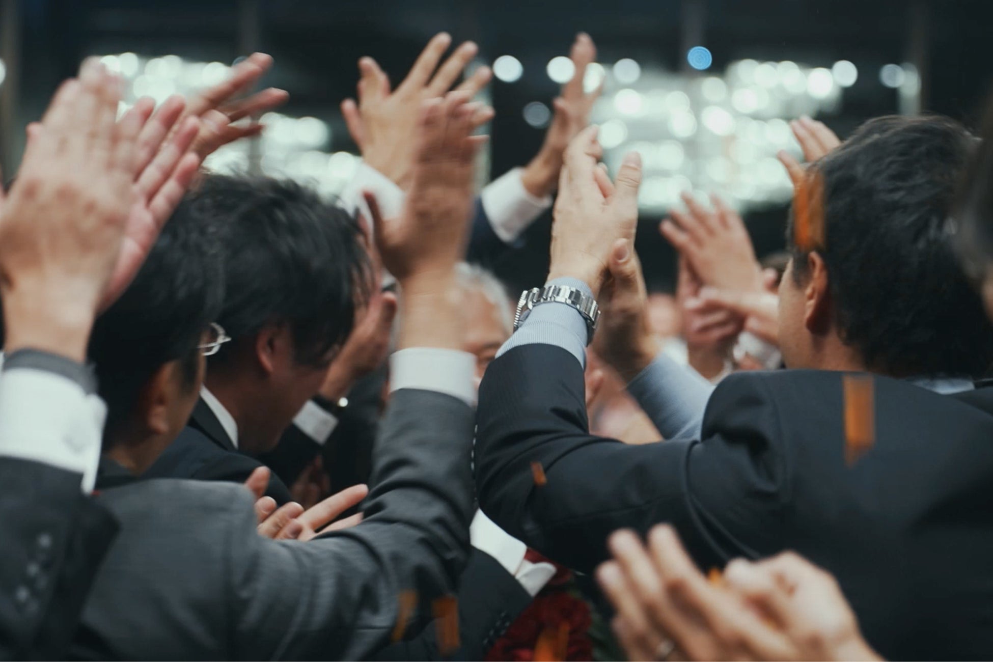 サービスが生まれたきっかけは、地元企業の代表承継式のプロデュースでした。「会社が大きくなるにつれ目が行き届かなくなる社員たちの気持ちを、代替わりのタイミングでどう繋ぎとめるか」という課題解決の為、結婚式で培ってきたノウハウが活きました。