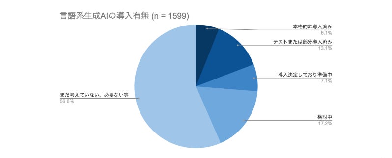 国内において、生成AIへの需要は日に日に高まっています。2024年にMM総研が行った生成AIに関する国内利活用動向調査によると、80%の国内企業は生成AIを未導入である一方で、うち半数は導入に意欲的であると回答しています。