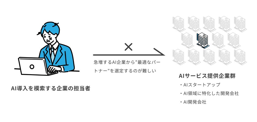 これらの課題により、AI導入を希望する企業と、AIサービスを提供する企業のマッチングが最適化できていないのが現状です。