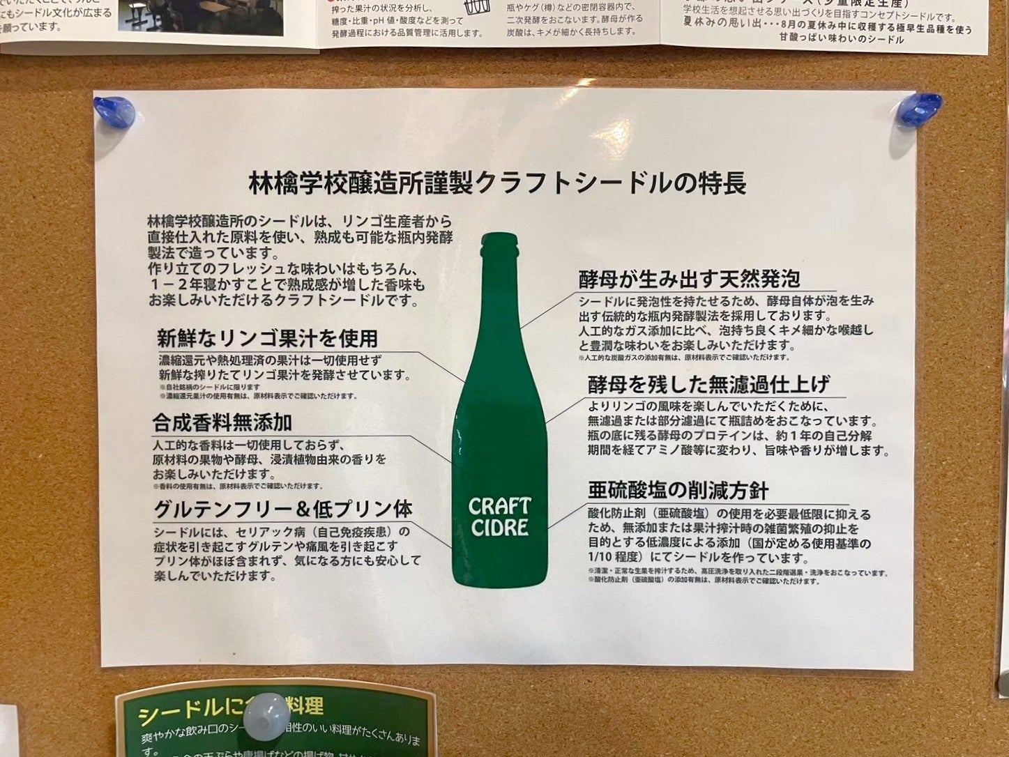 ビタミンCや亜硫酸などの酸化防止のための添加物や人工的な香料を一切加えず、シードルそのものの味わいを邪魔しないよう工夫しています。