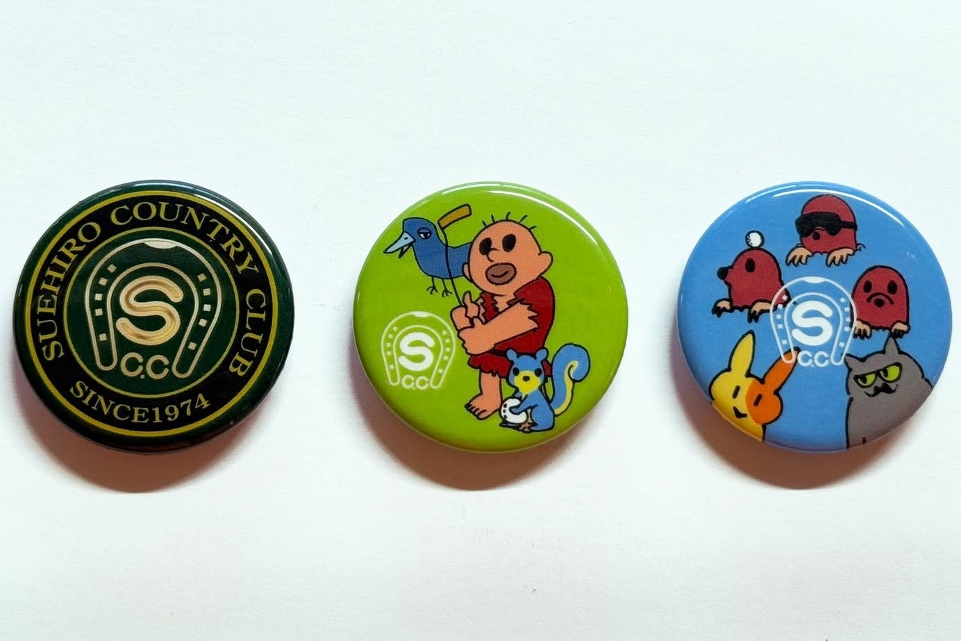 この度、50周年を記念して、ゴルフマーカーとしても使えるオリジナルマグネットを製作いたしました。末広カントリークラブのロゴやオリジナルキャラクターをあしらった特製マグネットは全部で3種類。ショートコース1プレイにつき1回ガチャガチャを回していただき、出たマグネットをプレゼントいたします。何が当たるかはお楽しみ。