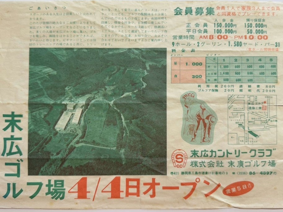 高度成長期の1974年、先代遠藤 徳保(えんどう のりやす)は先見の明をもって末広カントリークラブを創設しました。当初営んでいた工場の騒音問題から移転を余儀なくされた先代は、またこのようなことが無いようにと、周辺の自然豊かな丘陵地を活かしゴルフコースを造ることを決意。従業員の福利厚生向上はもちろん、地域住民にも気軽にゴルフを楽しめる場を提供したいという願いを込めて誕生しました。時代は第一次ゴルフブームということもあり多くの方で賑わい、ナイター営業もするほどに。半世紀の歴史を刻み、時代は移り変わり、自然環境も大きく変化する中で、ゴルフ場を維持していくことは決して容易ではありませんでしたが、先代の想いを胸に、このゴルフ場を守り続けると日々精進してまいりました。地域の皆様に支えられ、創業から半世紀を迎えた今も三島のシンボルとして末広カントリークラブは歩みを進め続けています。