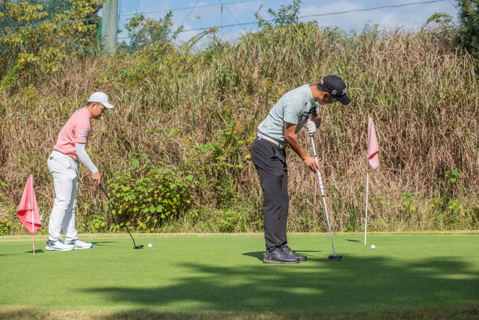地元日大三島のゴルフ部出身プロゴルファーである板東 寿匡(ばんどう としき)プロと杉田 龍英(すぎた りゅうえい)プロが、撮影を兼ねてコースを体験されました。地域のゴルフ界を盛り上げる若手プロの活躍は、末広カントリークラブにとっても大きな喜びです。