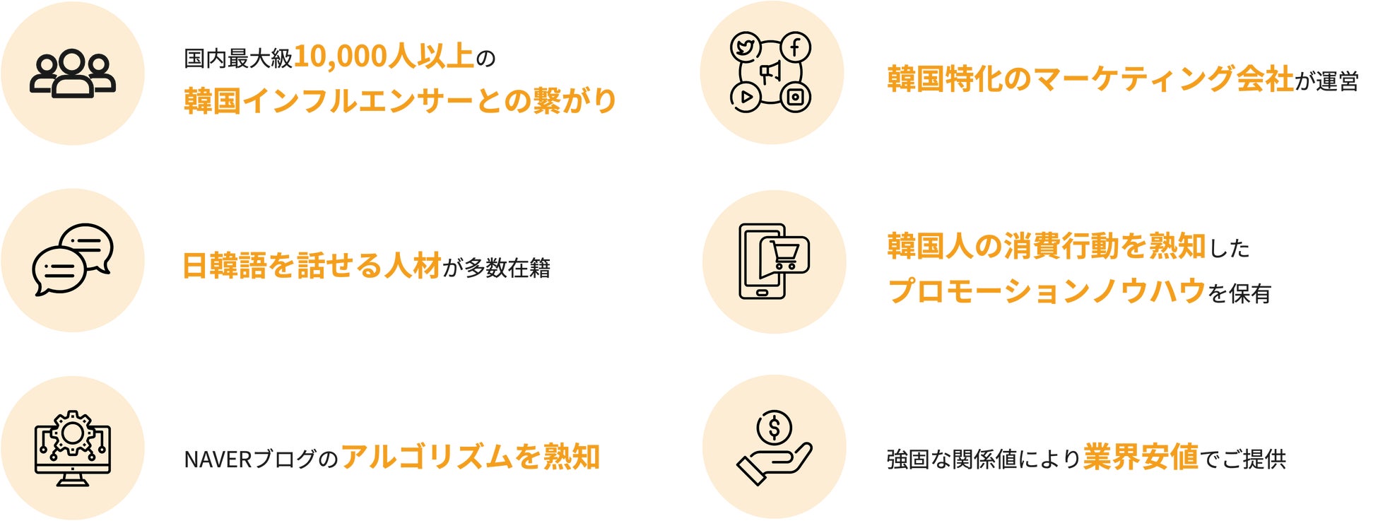 韓国のトレンドを発信するインフルエンサーと直接連携し、ターゲット層へ一気にリーチ。SNS上での話題拡散により、認知度を効果的に高めます。