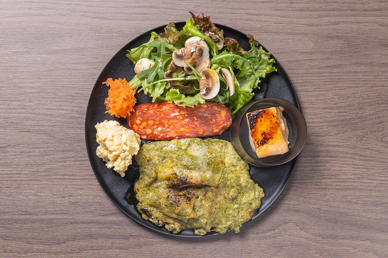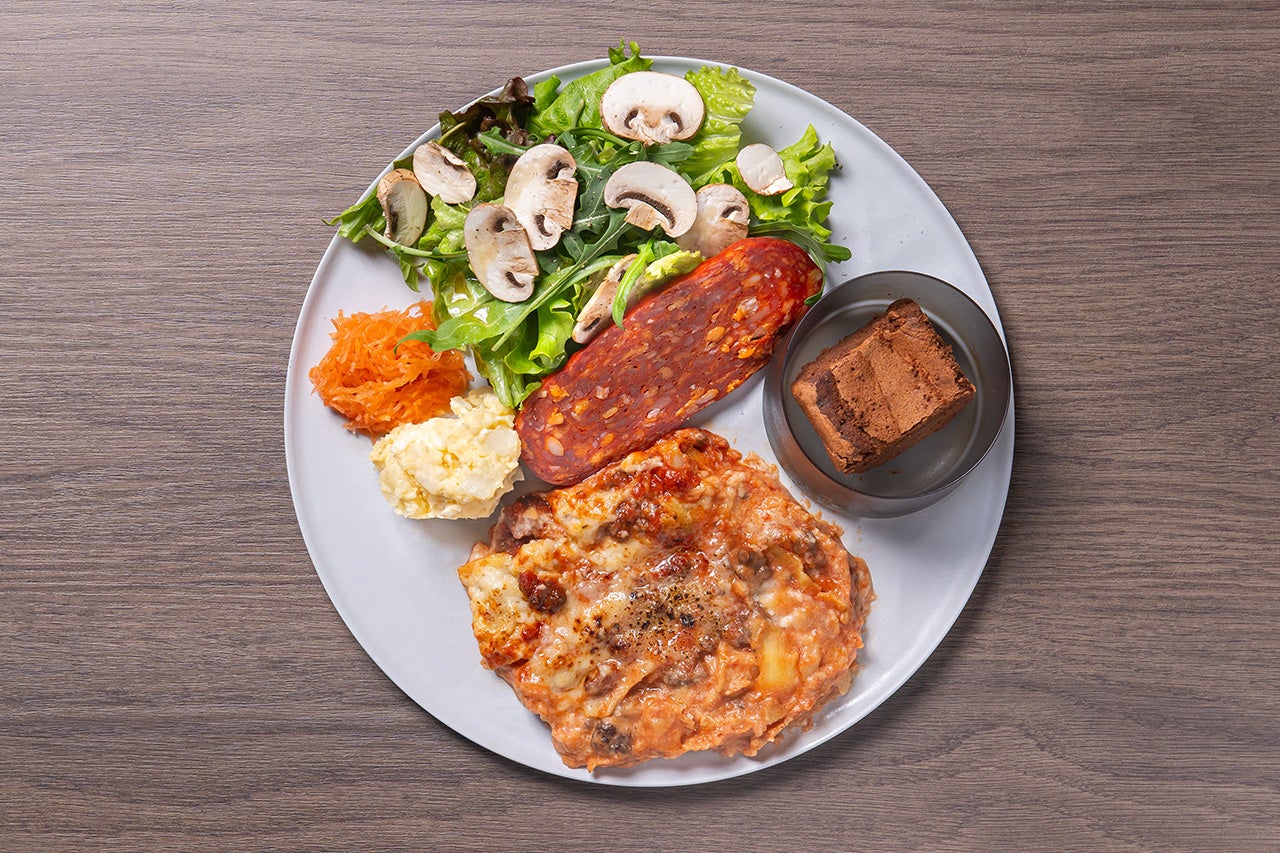 料理はイタリアで「ピアット・ウニコ」と呼ばれる一つの大きい皿に、ラザニア、サラダ、惣菜、デザートなど全てを盛り付け、“大人のお子様ランチ”をイメージ。美味しいものを一皿にギュッと詰め込んだユニークなスタイルでご提供します。
