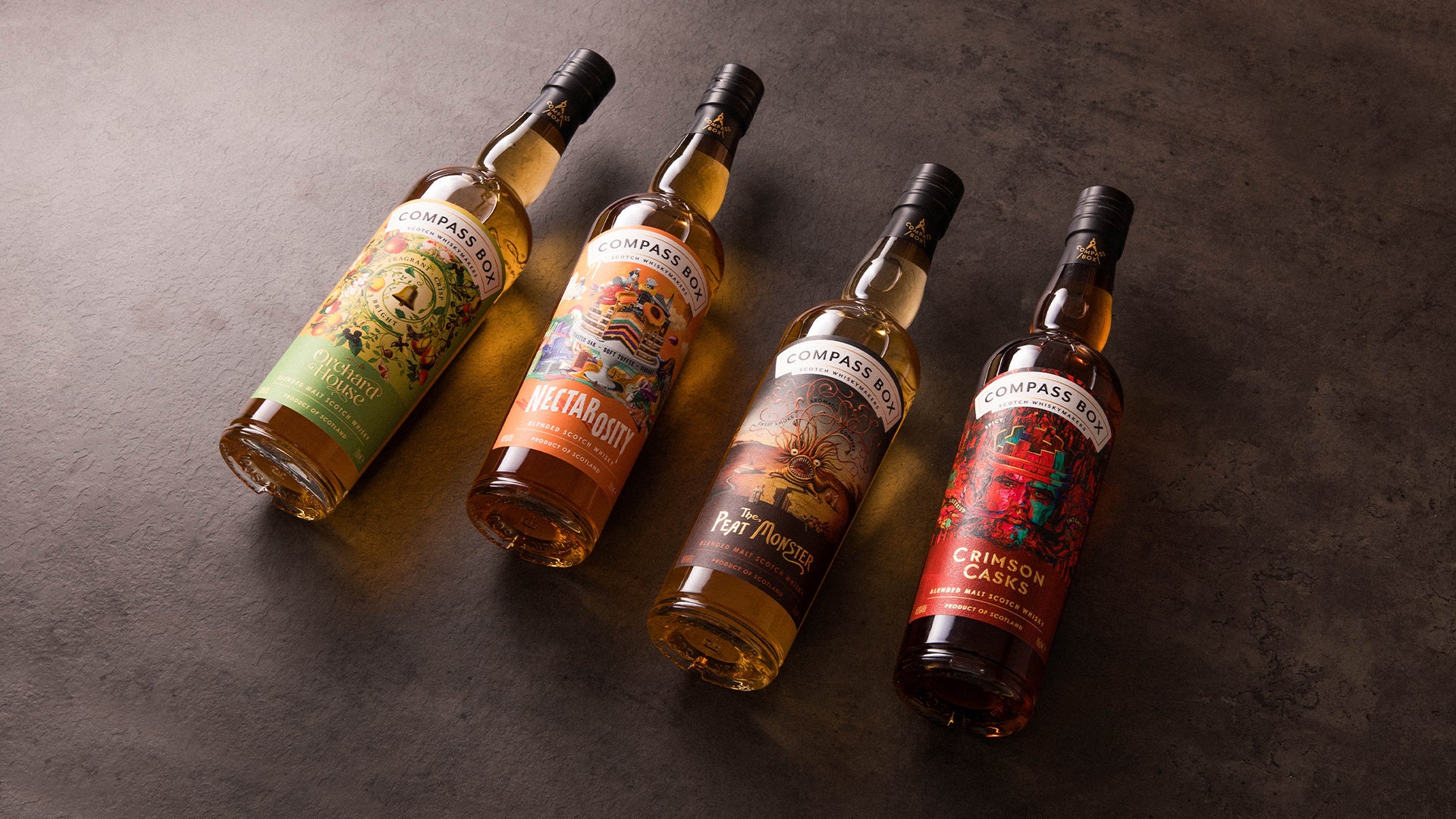 スコッチウイスキー「コンパス ボックス(COMPASS BOX)」は、コアコレクションを刷新。新作2種を新たに加え、日本での販売を順次開始いたします。