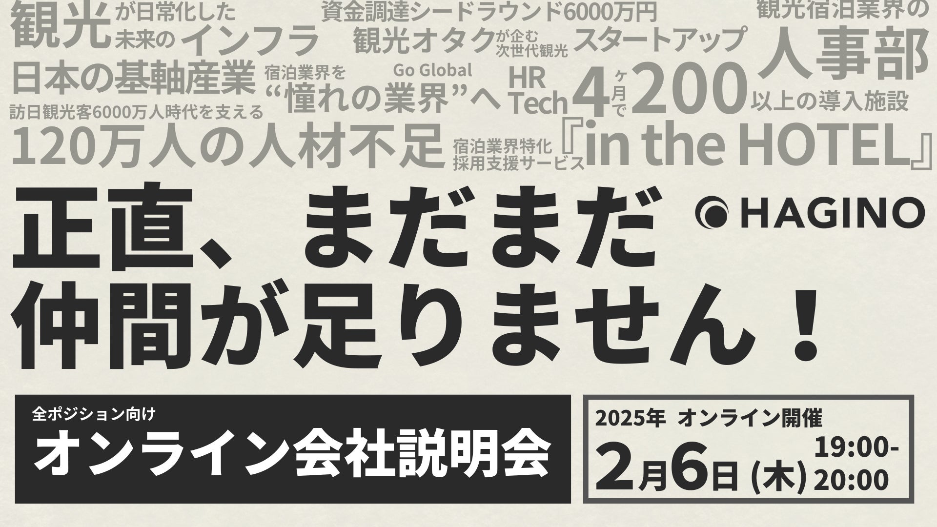 ◼️宿泊業界を担っていくHaginoの創業メンバーの採用強化中!