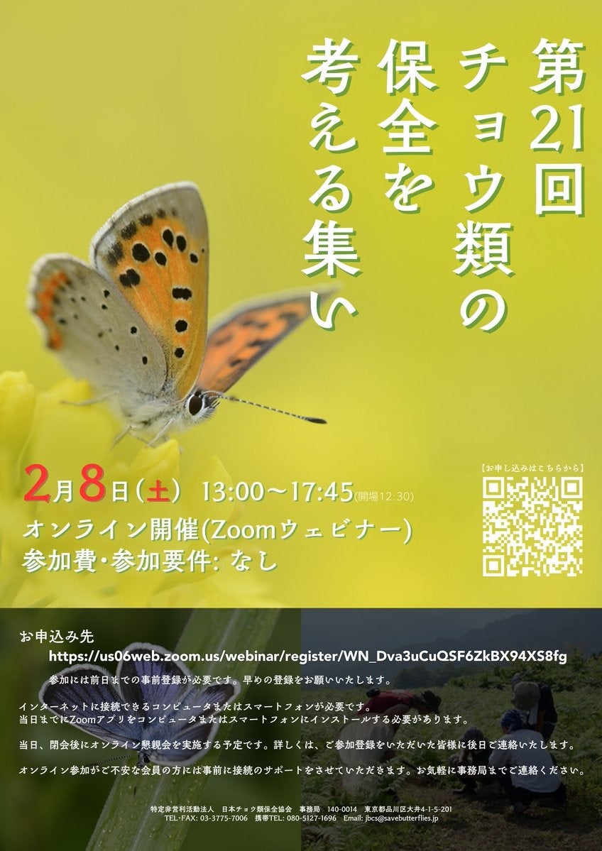 認定NPO法人 日本チョウ類保全協会は、「第21回チョウ類の保全を考える集い」を 2025年2月8日(土)に開催します。
