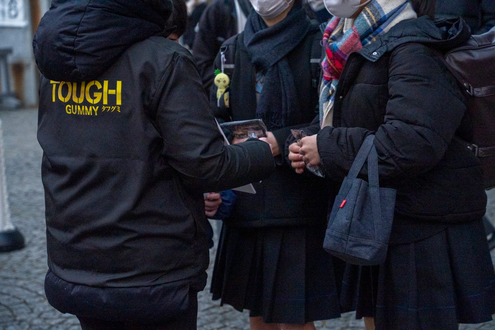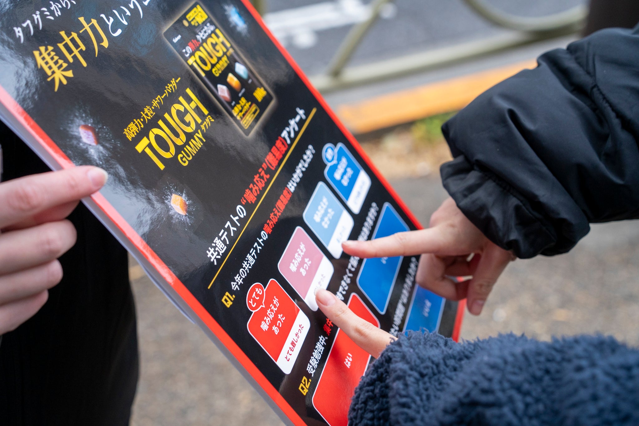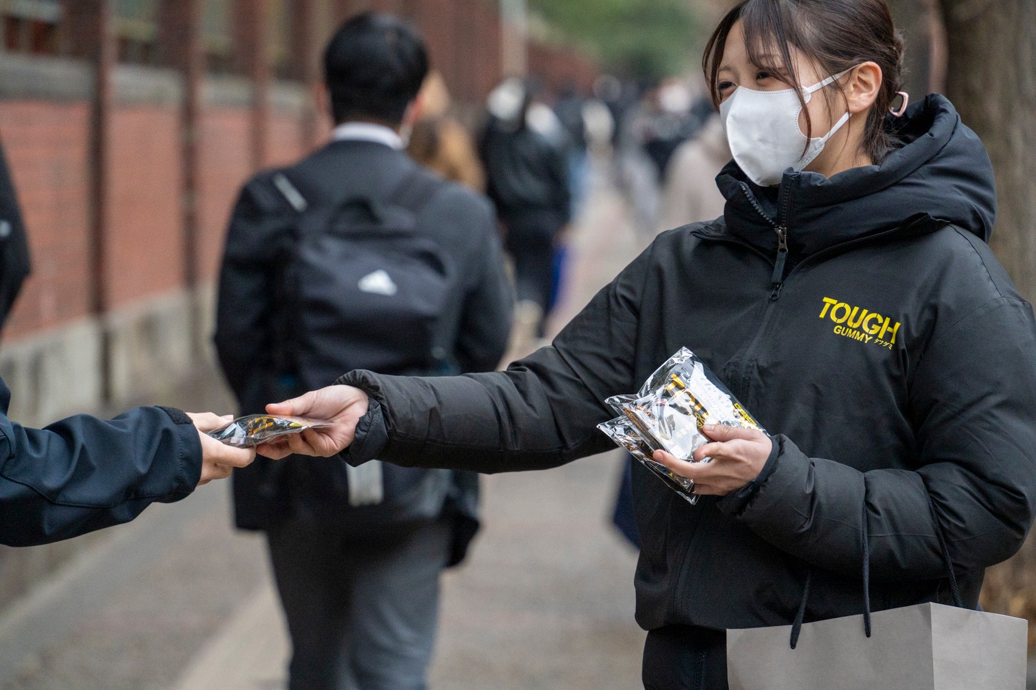 共通テスト直後の試験会場周辺で受験生を応援!『タフグミ』をサンプリング