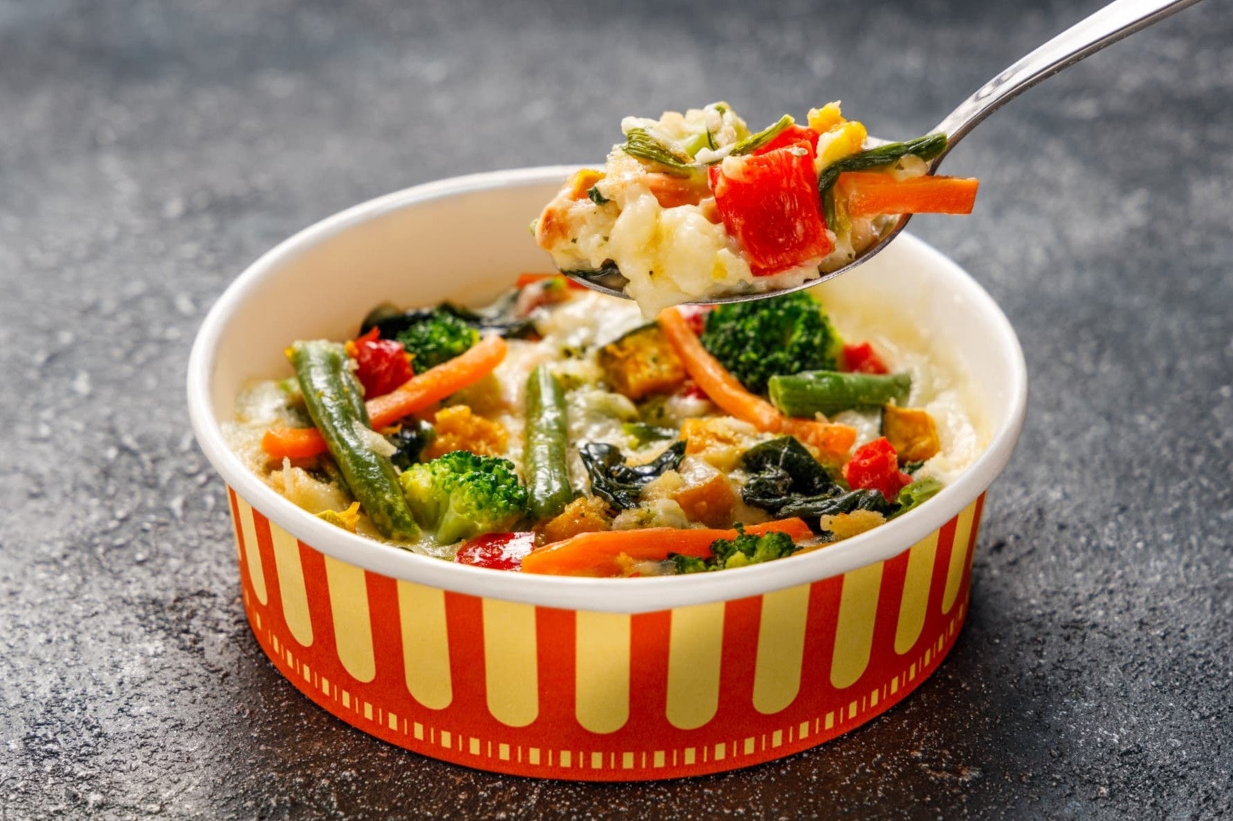 手作り感と具材感にこだわり、オリジナルのホワイトソースで野菜の甘みを引き立てたグラタンに仕上げました。忙しい日でも電子レンジで簡単調理でき、手軽に本格的なグラタンが楽しめます。