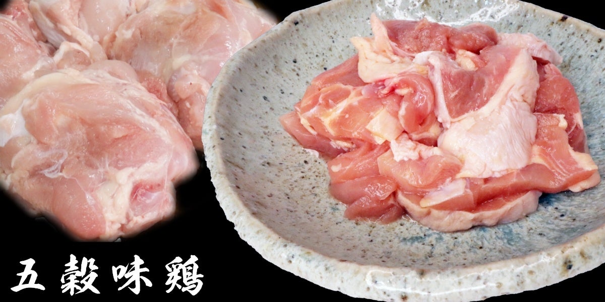 五種類の穀物を飼料として与え、地鶏に負けない味と食感を実現した銘柄鶏です。五穀とは、トウモロコシ・大豆・マイロ・玄米・ライ麦です。大豆は、栄養と旨味が詰まった「丸大豆」を丸ごと配合しました。また、 「舞うほどに旨い」と言われる舞茸を与え、さらに味が深みを増しました。鶏好きをもうならせる濃厚な味わいが楽しめる五穀味鶏は、まさに『ほんとうの鶏の味がする』鶏肉です。