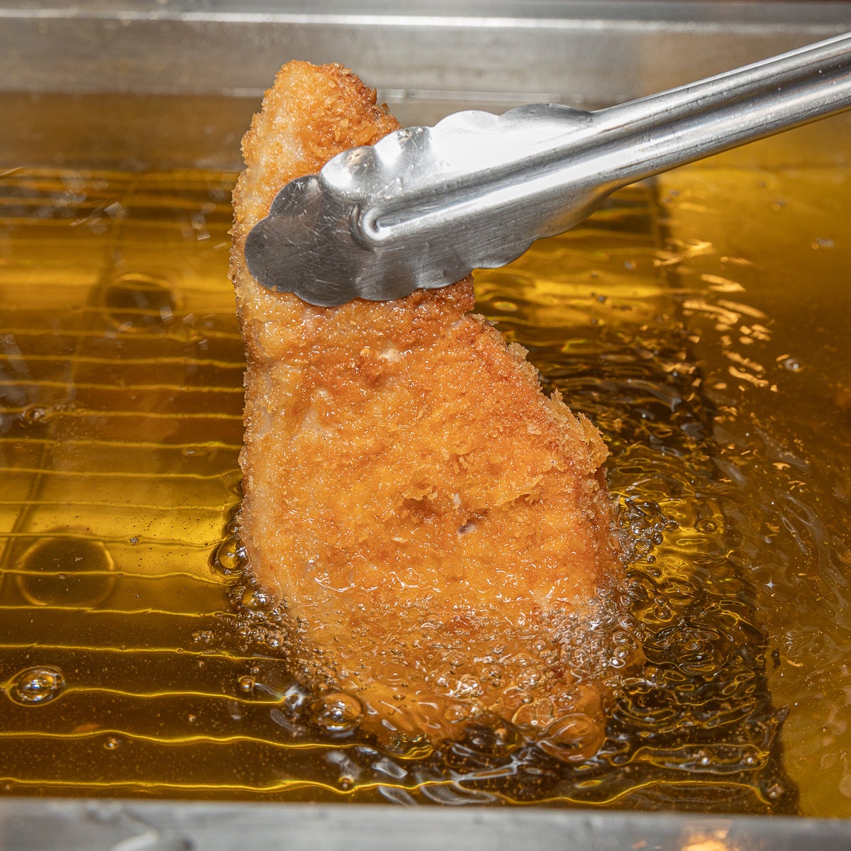 低温の油でじっくりと揚げることで、肉の旨味を閉じ込め、フワッとした食感を実現。また、フライヤーに特殊な機械を入れることで油の吸着率を抑え、胃もたれしにくいとんかつに仕上げました。