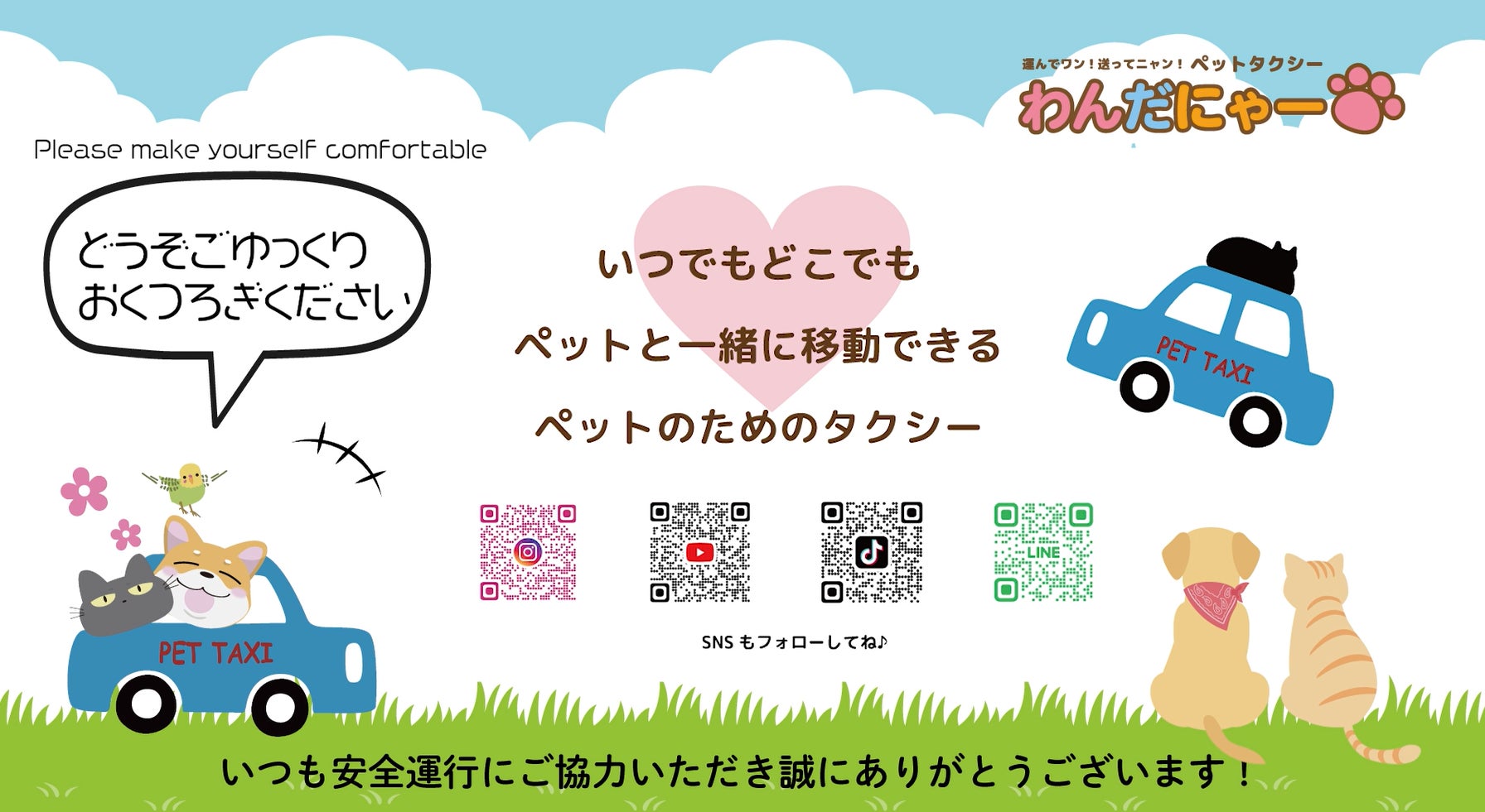 株式会社ニャーは、ペットと飼い主が快適に移動できる環境を提供するため、2016年より「ペットタクシーわんだにゃー」の運営を開始しました。ペット専用の送迎サービスとして、動物病院への通院、引越し、旅行、空港送迎など、さまざまなニーズに対応し、安全で快適な移動をサポートしています。