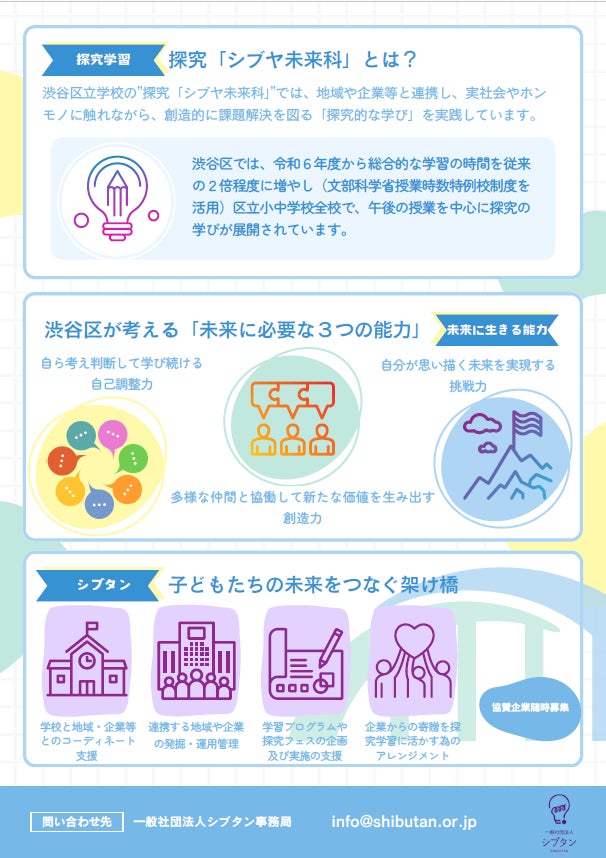 渋谷区立小中学校 探究学習「シブヤ未来科」 次世代公教育の探究学習支援プラットホーム 一般社団法人シブタンの設立!