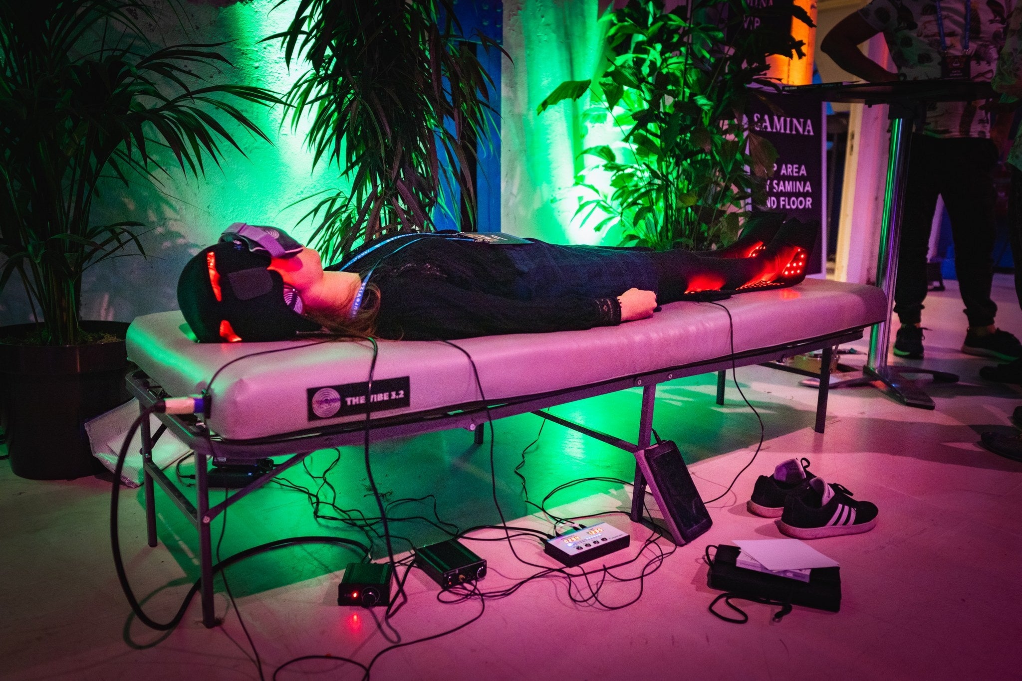 VIPゲストやスピーカーのみがアクセス可能なラウンジエリアは、参加者に特別なバイオハック体験とネットワーキングの機会を提供します。ラウンジでは特製ケータリングとリフレッシュメントが提供され、メインステージのセッションをモニターで視聴できる専用スペースがあります。
