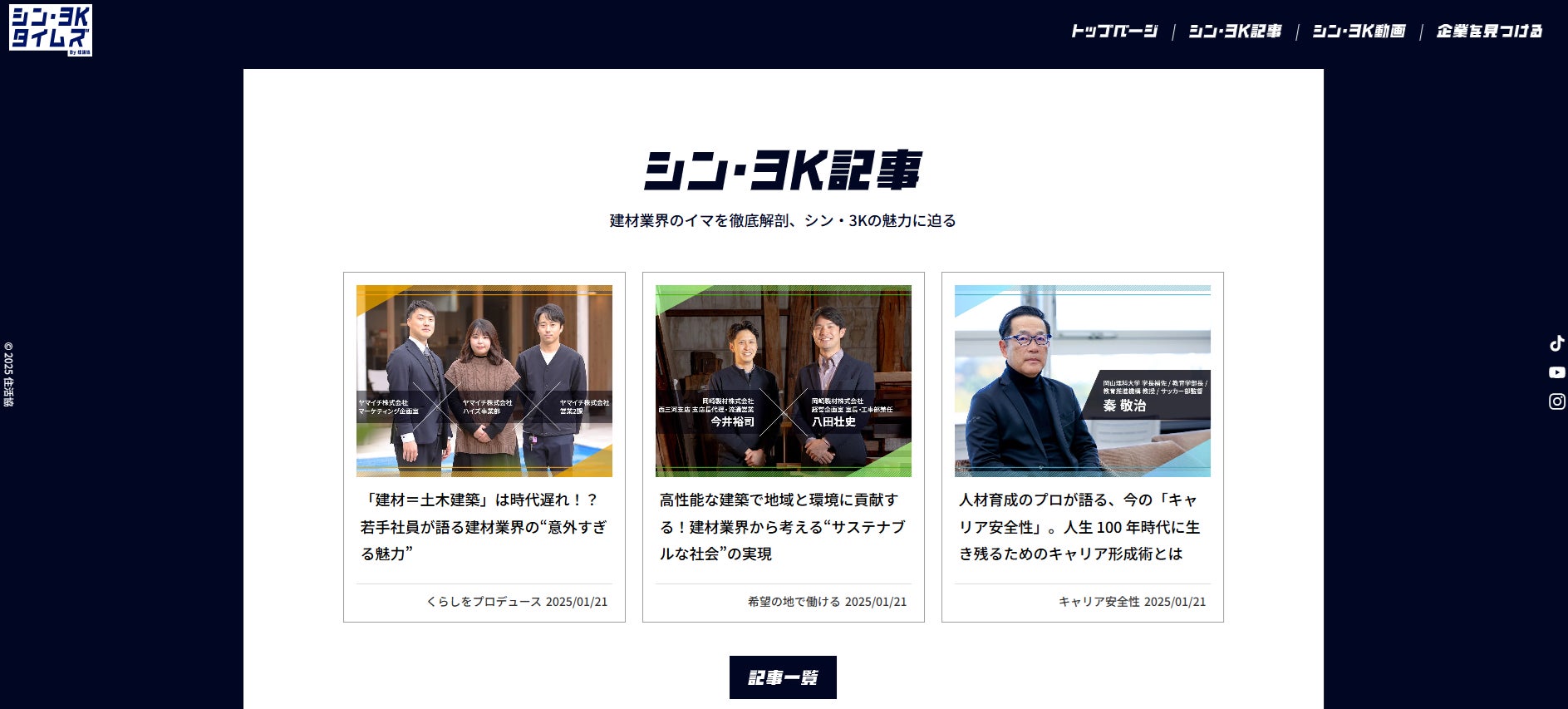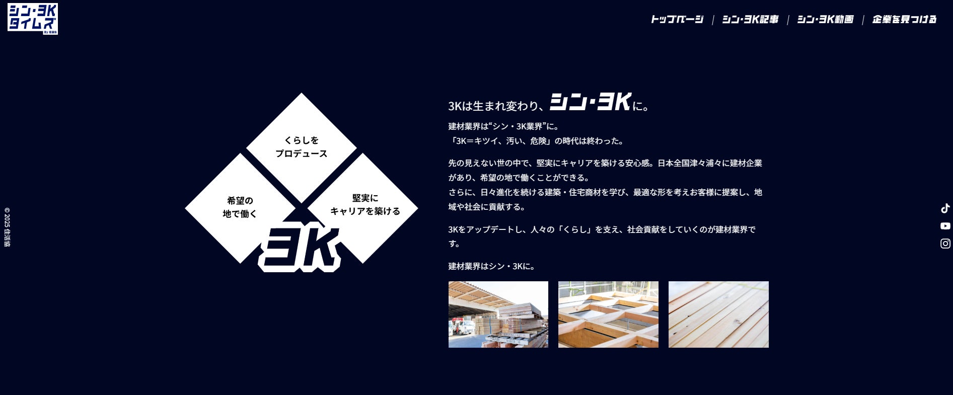 「シン・3Kタイムズ By 住活協」は、「くらしをプロデュースできる」「希望の地で働ける」「堅実にキャリアを築ける」という建材業界の魅力を発信し続けるため、オウンドメディアと公式Instagramアカウントを開設します。