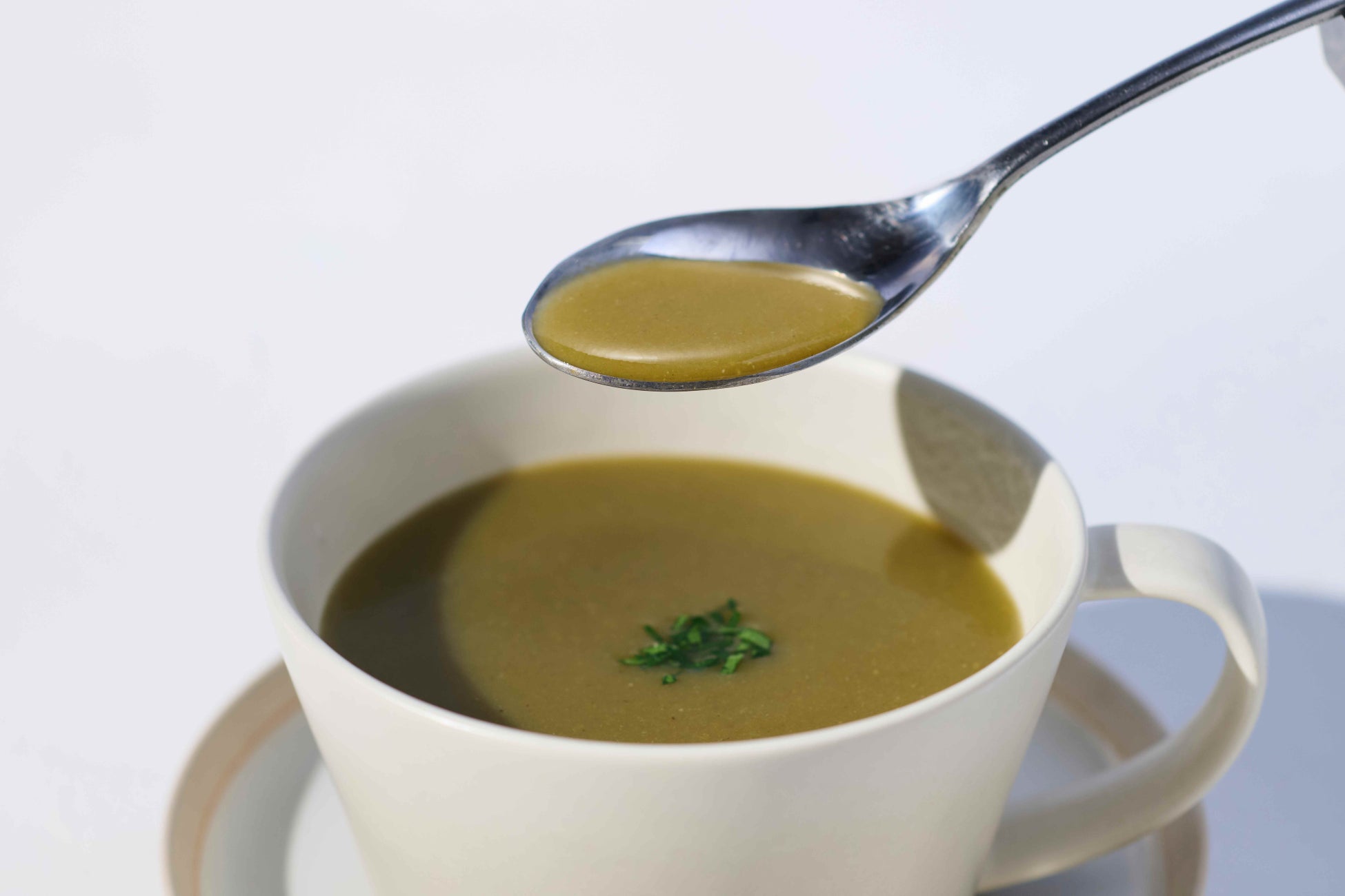 キャベツ、小松菜、ほうれん草、しそなど、国産の緑野菜をふんだんに使用。繊細な風味と自然な旨みが特長で、塩だけで味を整えたシンプルでヘルシーなスープです。
