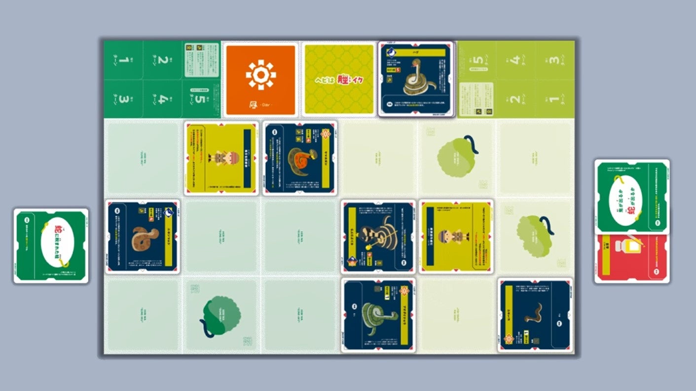 本製品は実在するヘビの生態や特徴が反映されたカードなどを使い、3×6マスのフィールドで行われる対戦型の超頭脳戦カードゲームです。