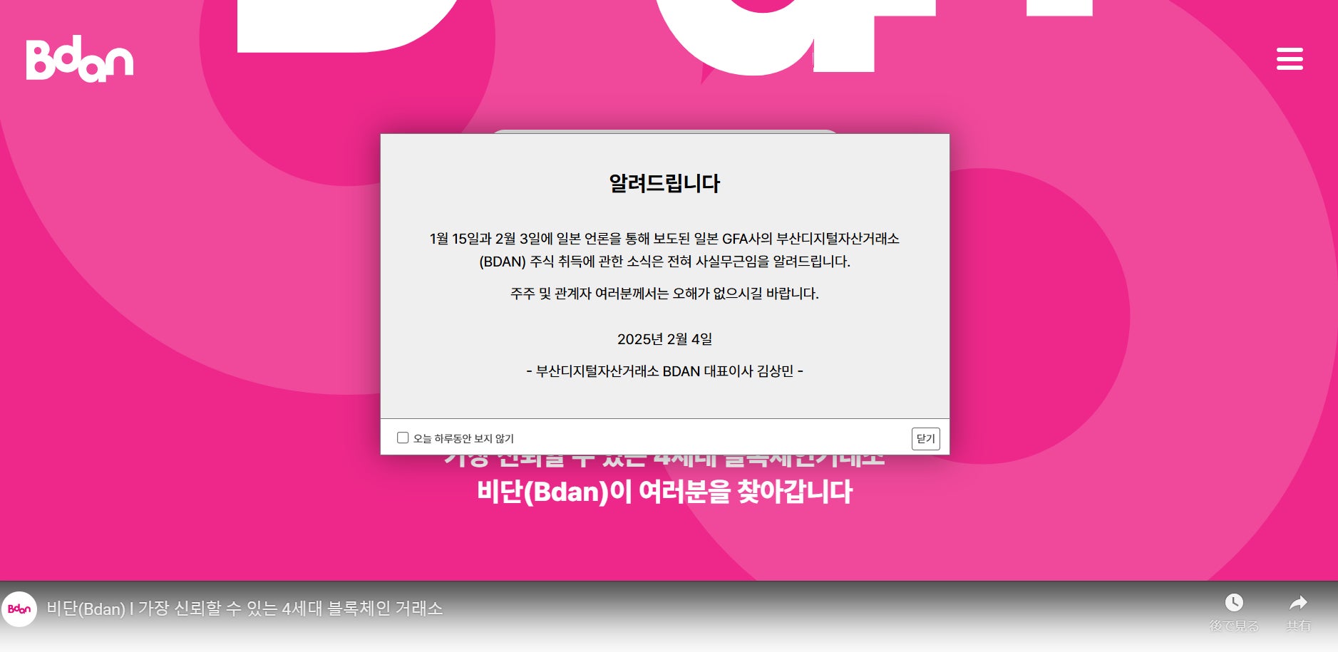 1月15日と2月3日に日本のメディアを通じて報道された日本GFA社による釜山デジタル資産取引所(BDAN)の株式取得に関するニュースは、全くの事実無根であることをお知らせいたします。