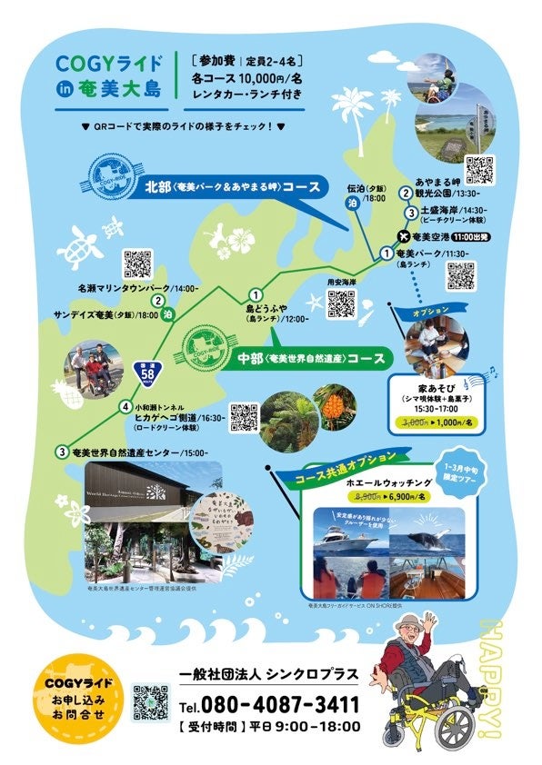 一般社団法人シンクロプラス(鹿児島県奄美市、代表理事:友野秀樹)は「つなぐ未来へ奄美『観光×環境』促進事業」(鹿児島県奄美市)に採択され、年齢を重ねても、歩行障害があっても、家族や友人と一緒に観光を楽しめるユニバーサルツーリズム体験プログラムを実施します。