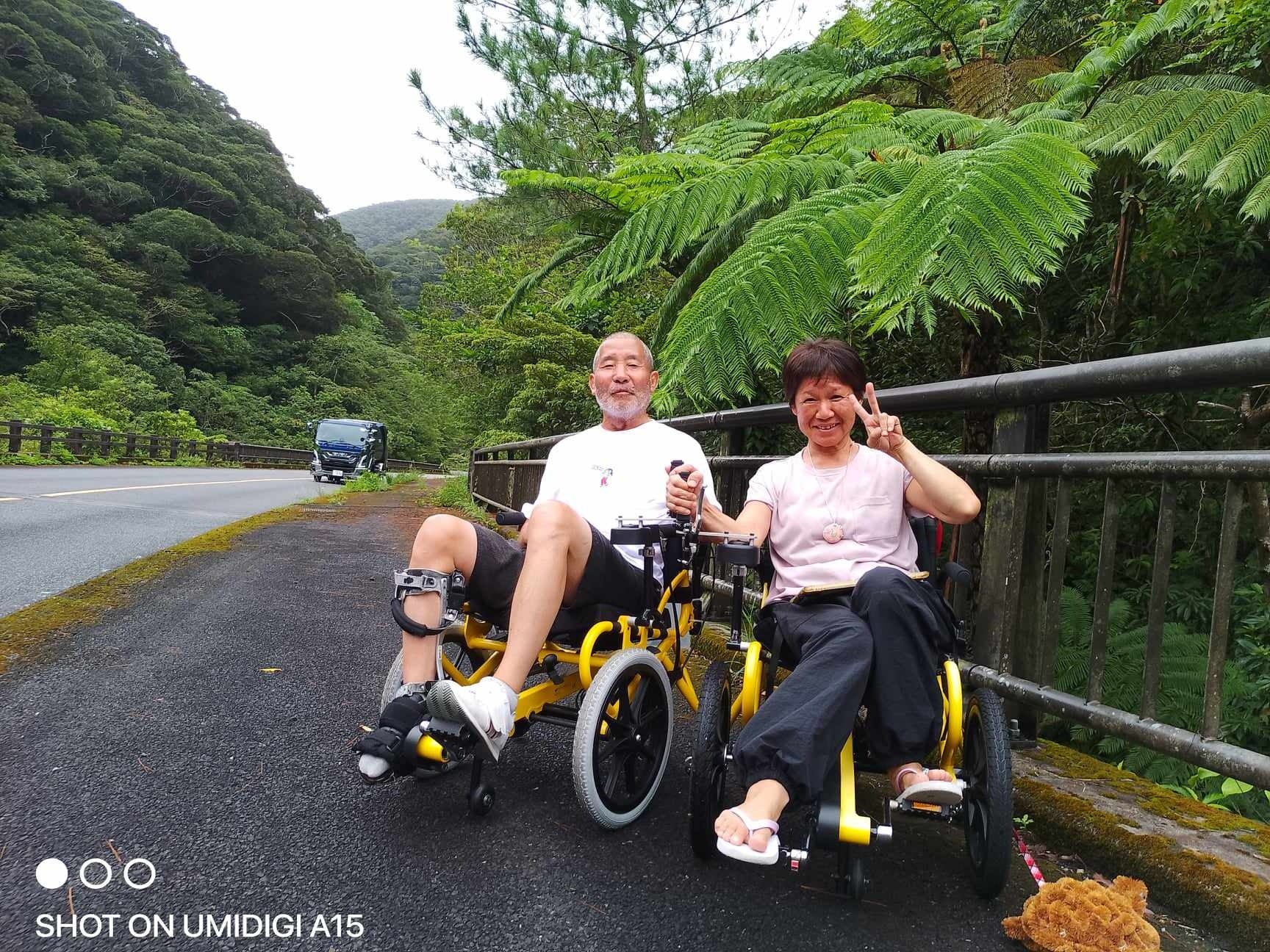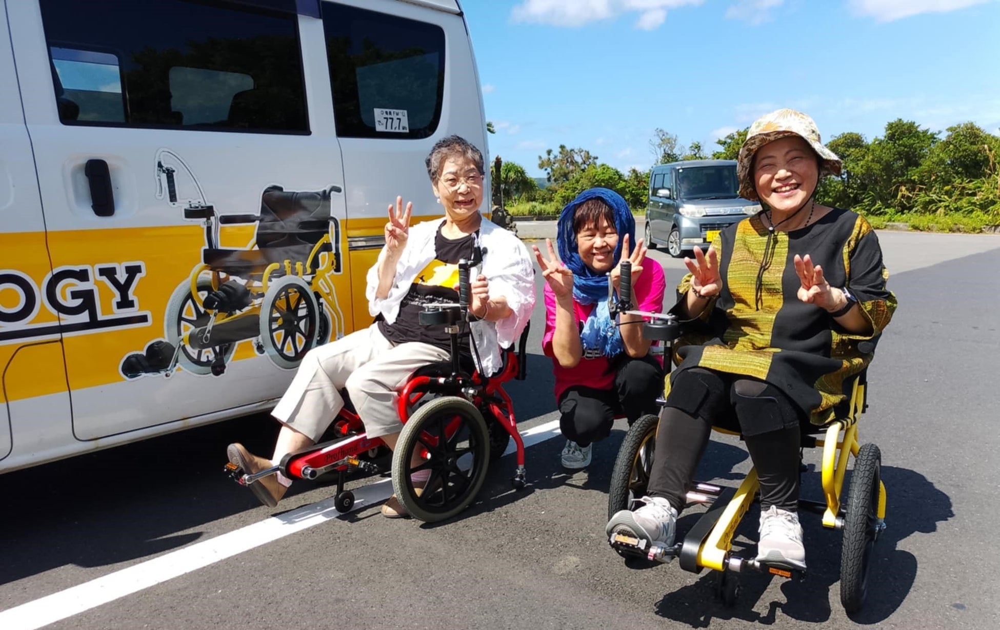 奄美大島に来た彼は、海を見ながら涙を流していました。自分が再び、こんな風に旅行ができるとは思っていなかったという、感激の涙でした。あの日見た、彼の涙がこの企画の原点になっています。あきらめなくてもいい。年をとっても、からだが不自由になっても、自分らしく生きられるのです。ぜひ大自然の中、頬で風を切る感覚を味わってみてください」