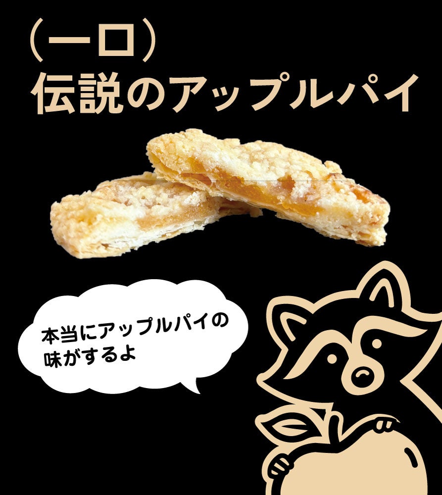 シンプルにアップルパイを作る原材料のみで、一口で食べる事ができるパイをコンセプトに作ったパイ菓子。素材のみの味でアップルパイの味がする珍しいパイ菓子です。いままでの工場製造のお土産と異なり、手作りにこだわる次世代の新感覚クラフトパイ菓子です。