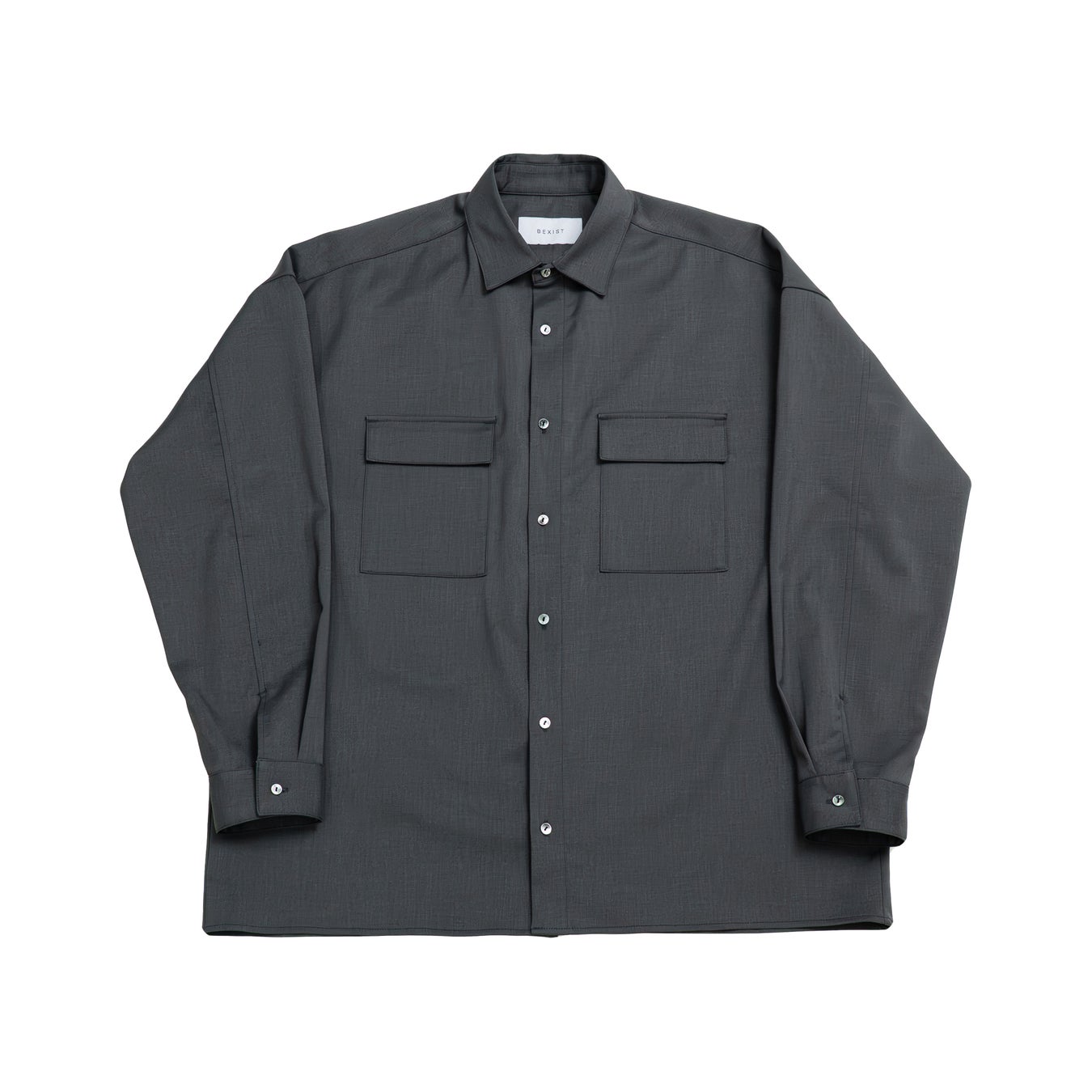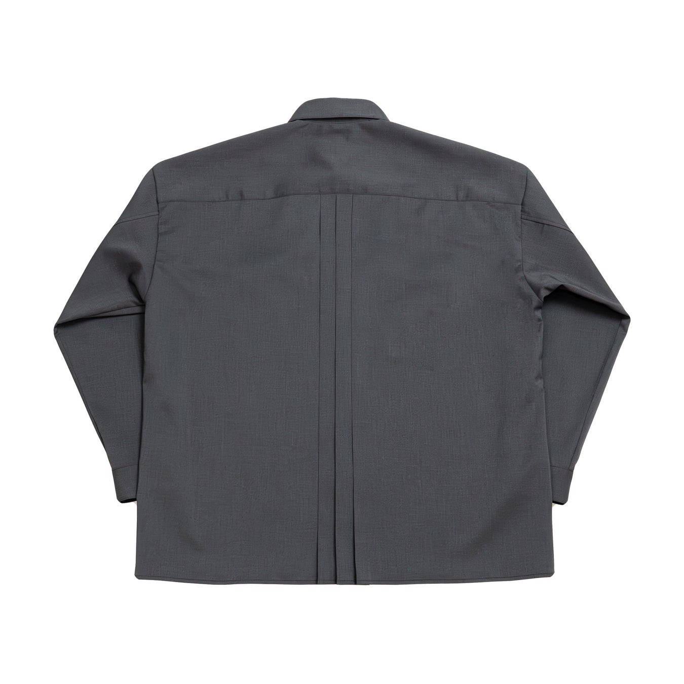 パッチ&フラップのワークシャツのフロントスタイルに3本のプリーツを施したバックスタイル。