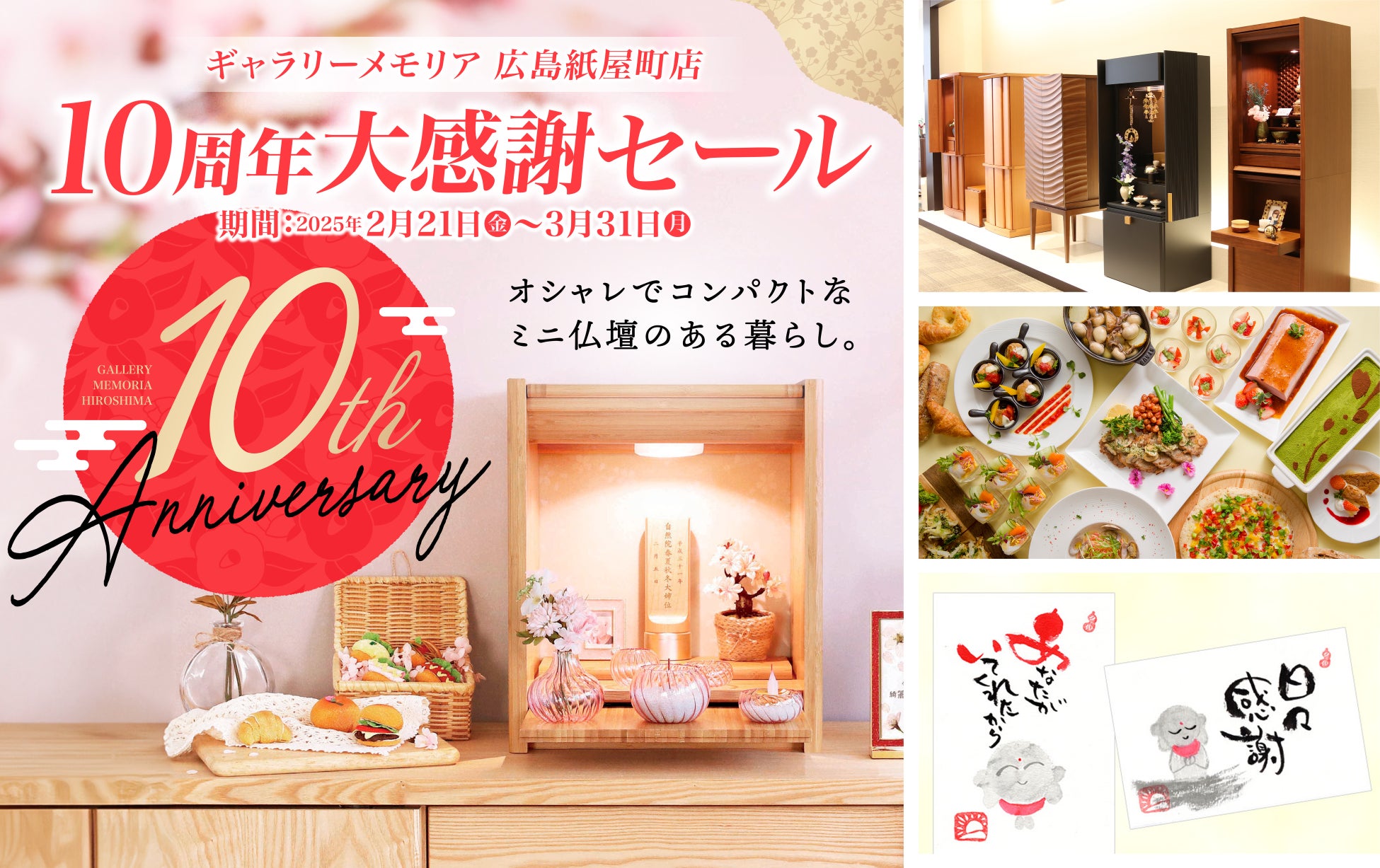 モダンな現代仏壇の「ギャラリーメモリア広島紙屋町店」が10周年!記念イベント【大感謝セール】が2月21日よりスタート!抽選で当たるホテルランチ券等プレゼント企画と体験イベントも開催!