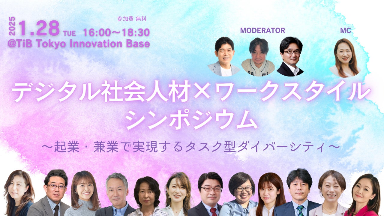 働き方の未来について議論する「デジタル社会人材×ワークスタイルシンポジウム〜起業・兼業で実現するタスク型ダイバーシティ〜」を1月28日にTiB有楽町にて開催