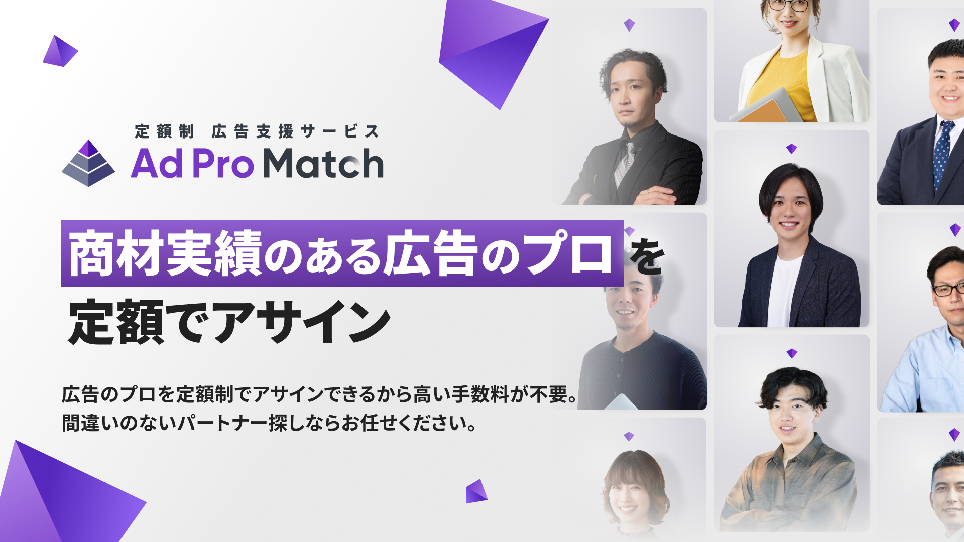 「Ad Pro Match」は、商材実績のある広告のプロを定額でアサインできるサービスです。