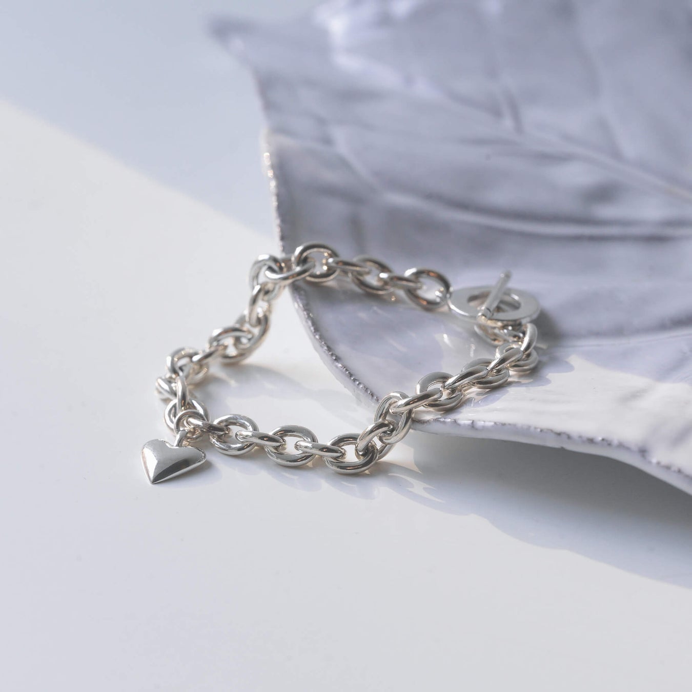 ボリュームがあるシルバーチェーンとハートトップを組み合わせたオープンハートブレスレット。クラシックさがありながら、柔らかさを感じさせる、洗練されたハートシルエットのトップが、どんなシーンにも華やかさを添えてくれます。