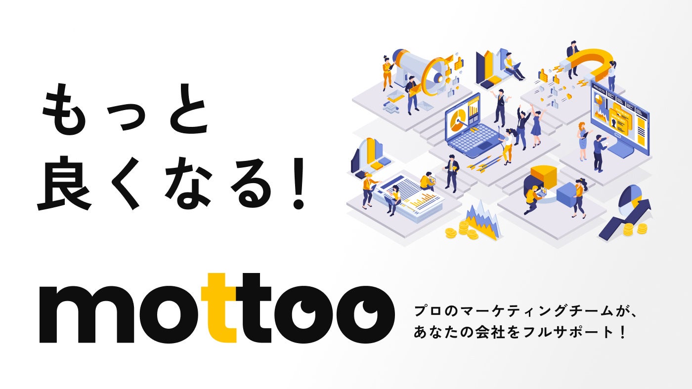 そこでRevisionは、企業の「もっと」を叶えるための新たな打ち手として、定額制Webマーケティングサービス「mottoo」の提供を開始します。「mottoo」は、高度な専門スキルを持つマーケティングチームを月額10万円から利用できる定額制サービスです。
