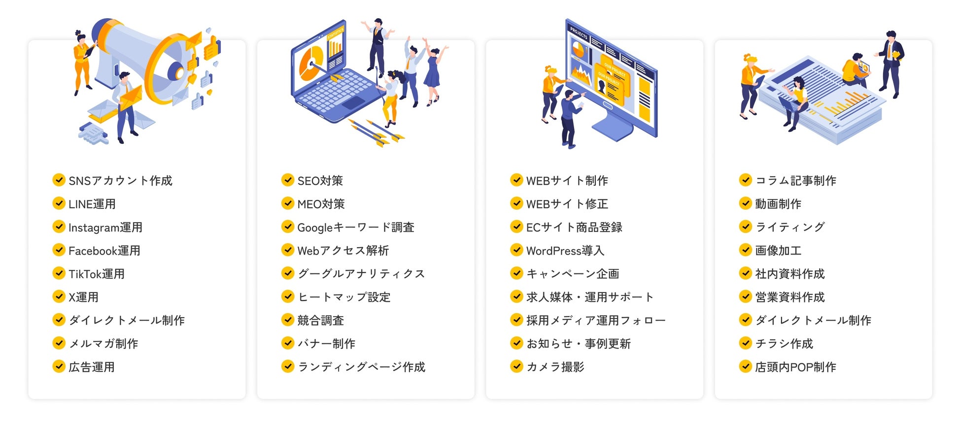 事業内容:ホームページ制作、採用サイト制作、SEO対策、動画制作、Webコンサルティング、SNSマーケティング