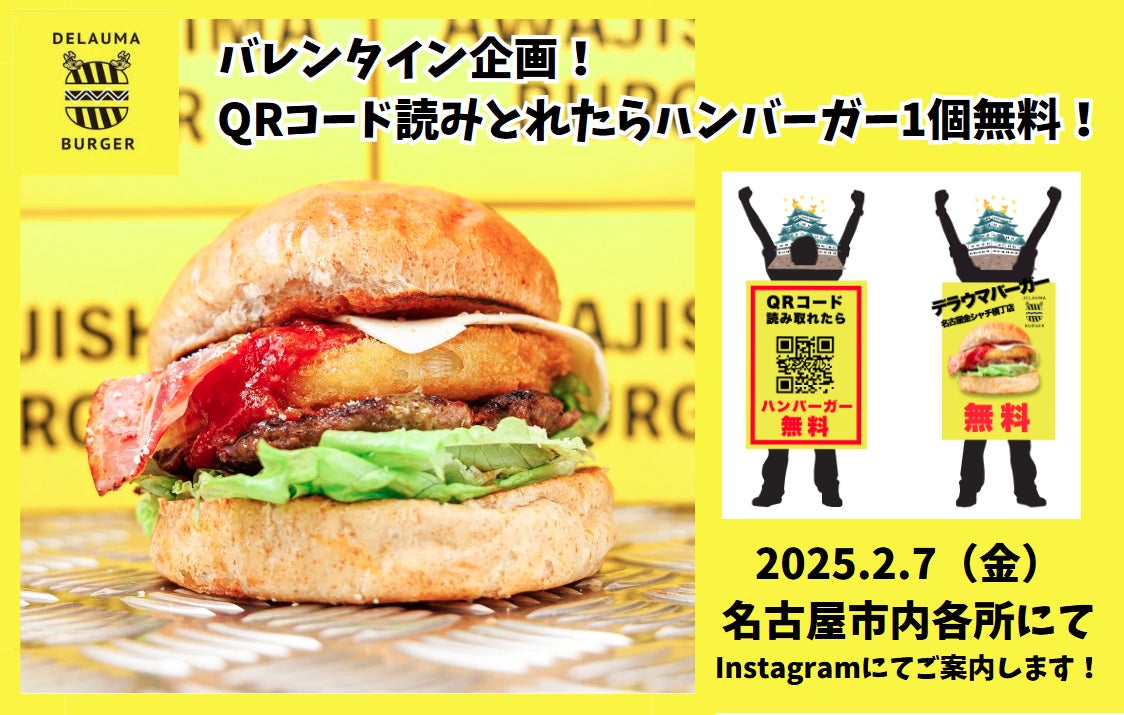 名古屋城金シャチ横丁に店舗を構える「DELAUMA BURGER 名古屋金シャチ横丁店」(以下、デラウマバーガー、運営:合同会社ムーブフォワード、所在地:愛知県名古屋市、代表:正木夏美)では、バレンタインシーズンにあわせて、特別なプレゼントキャンペーンを実施いたします。