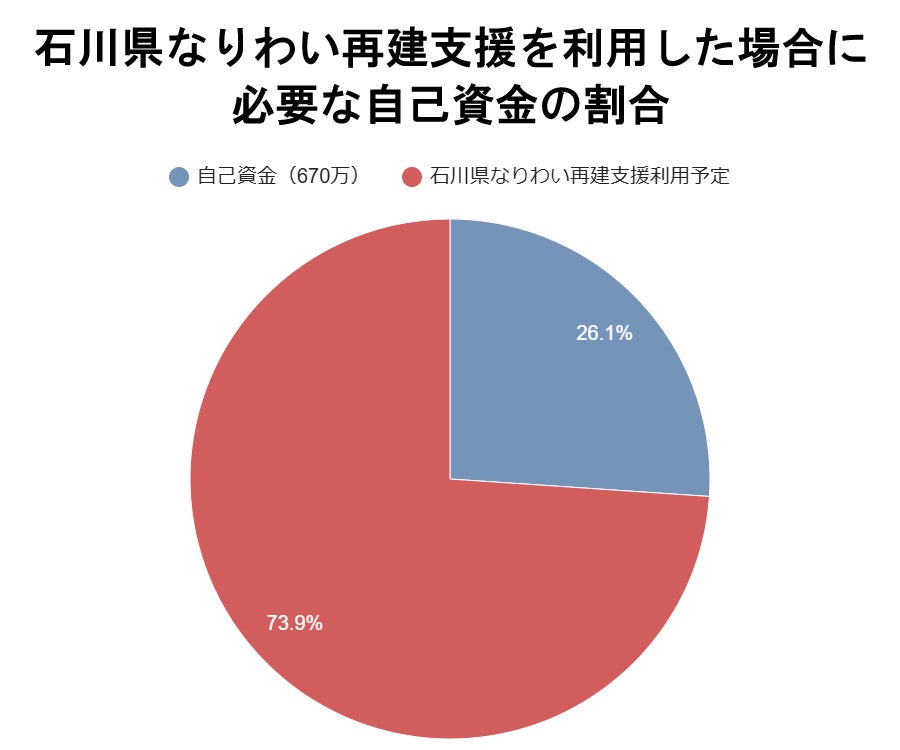 石川県なりわい再建支援(4分の3補助)を利用できた場合、約670万円が自己資金として必要になります。
