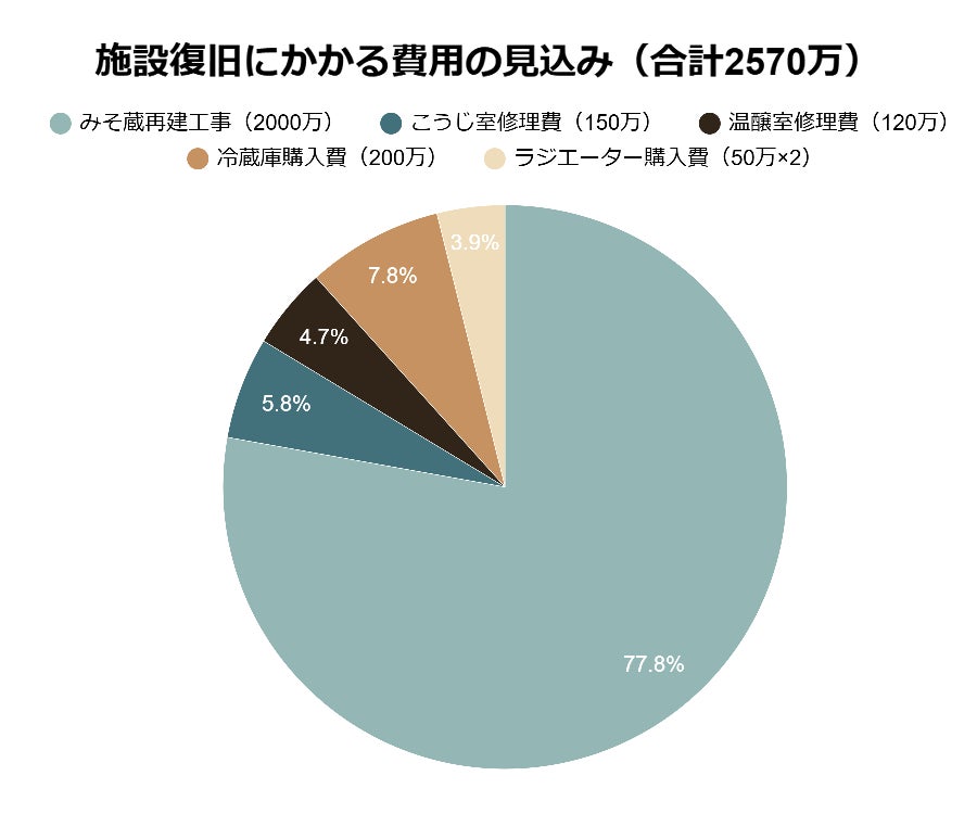地震で被災した施設を復旧するには総額2570万円程かかる見込みです。
