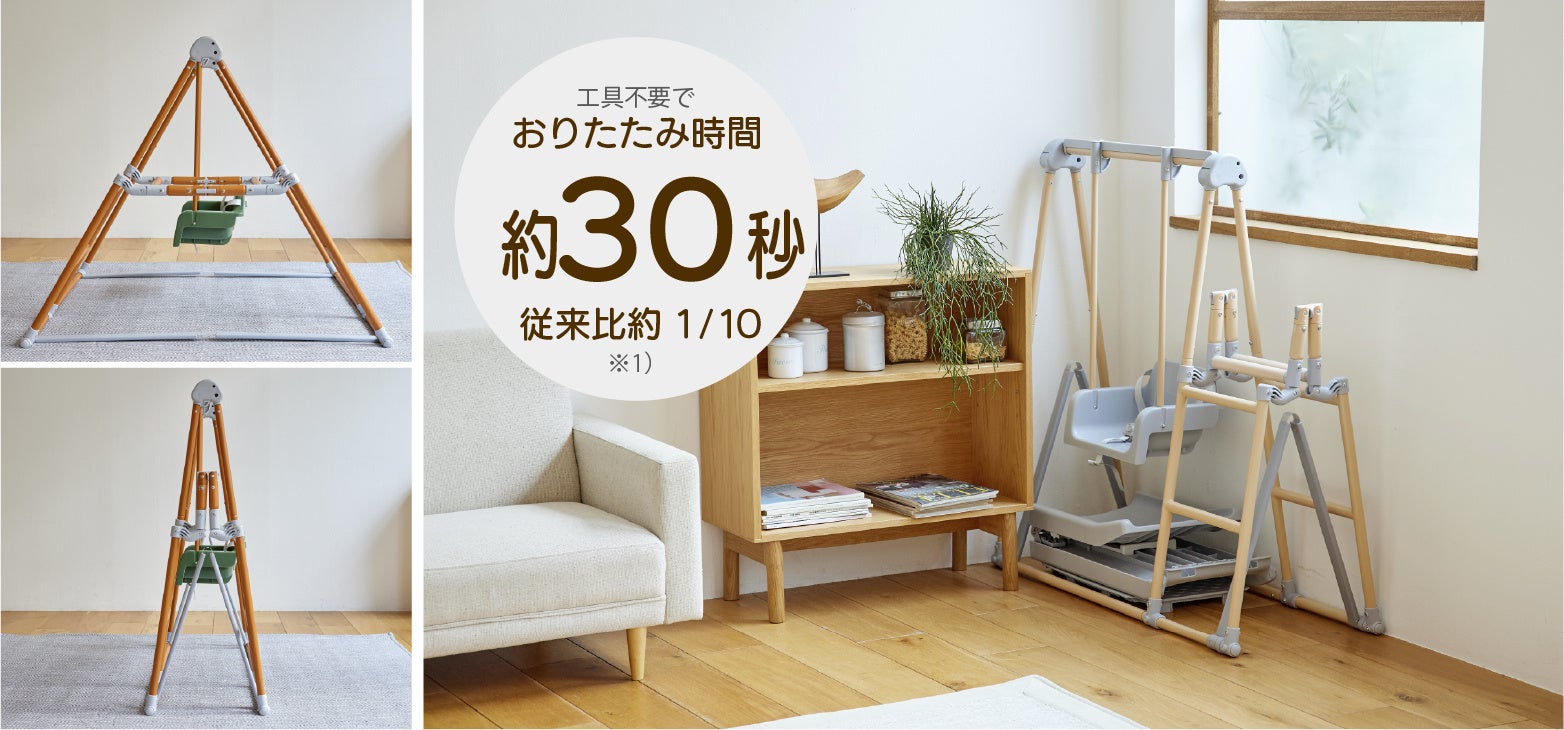 使わない時や掃除の時はすぐに片付けられるように折りたたみも改良しており簡単に折りたためるようになっています。従来商品の「たたみにくい」というご意見を改善するため、新設計&デザインで劇的に簡単に折りたためるようになりました。工具不要で約30秒(従来比約1/10)で折りたためます!