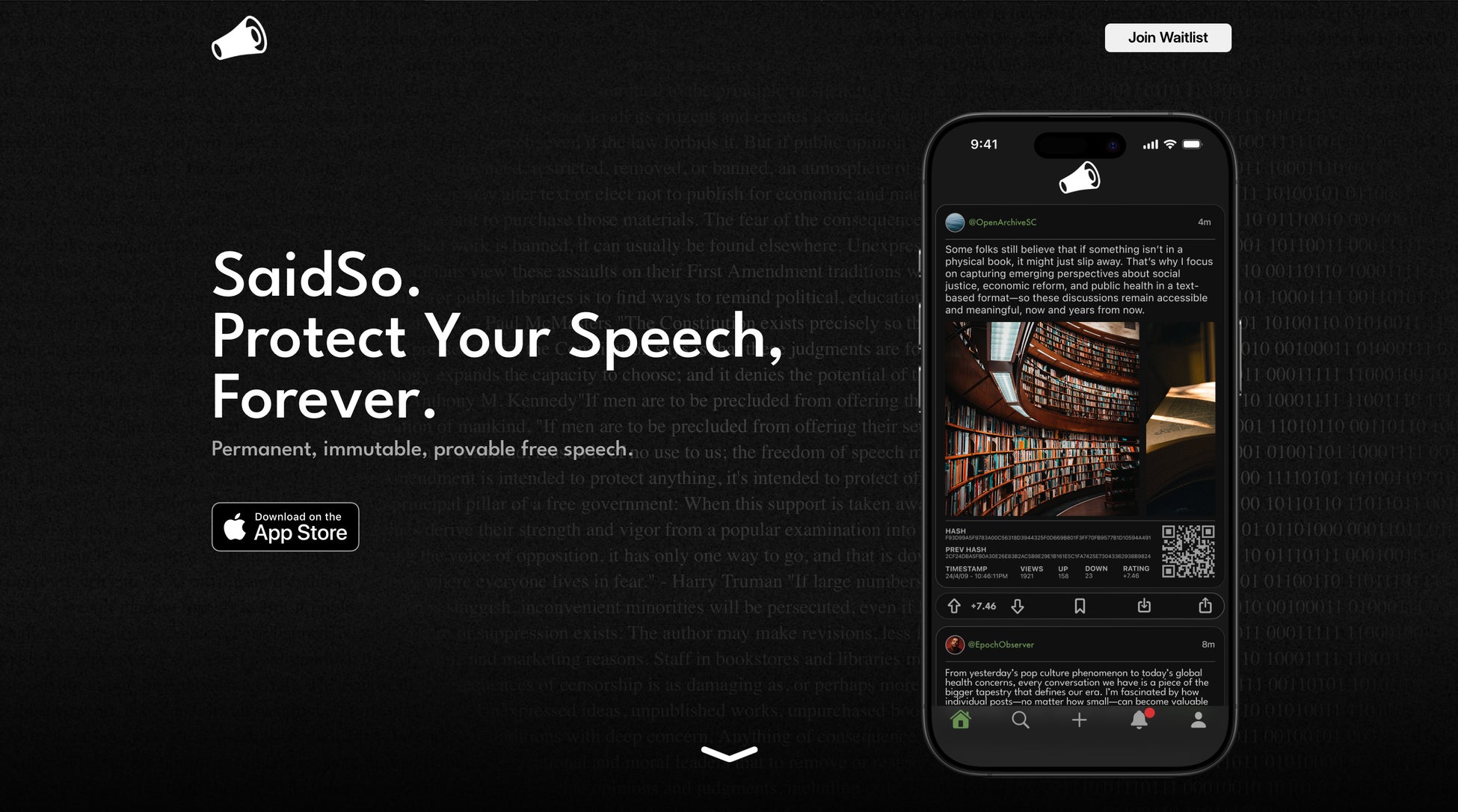 「SaidSo」は、急速に進化するAI技術に伴うフェイク情報の拡散や検閲問題に対し、ブロックチェーン技術を活用して解決を図ります。各投稿は、誰がいつ何を発言したかを暗号署名し、改ざん不可能なブロックチェーンに記録。これにより、投稿の真正性と透明性が確保され、検閲や削除を防止します。また、不正なコンテンツの作成者や拡散者を容易に特定可能です。