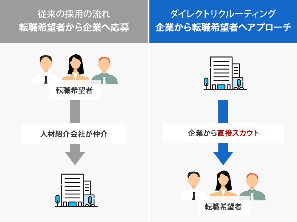 スキル・経験に基づき最適な人材を検索し直接スカウト(ダイレクトリクルーティング)が可能です。従来の求人サイトのように求人情報を掲載し、応募を受け付けることもできるため効率よく求職者を集めることができます。