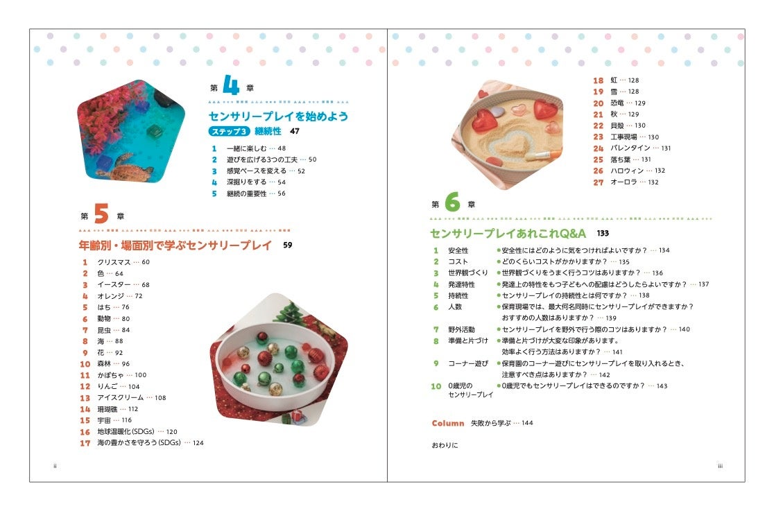 あそび「センサリープレイ」を、園と家庭の双方で体系的に学び、実践できる一冊となっ
