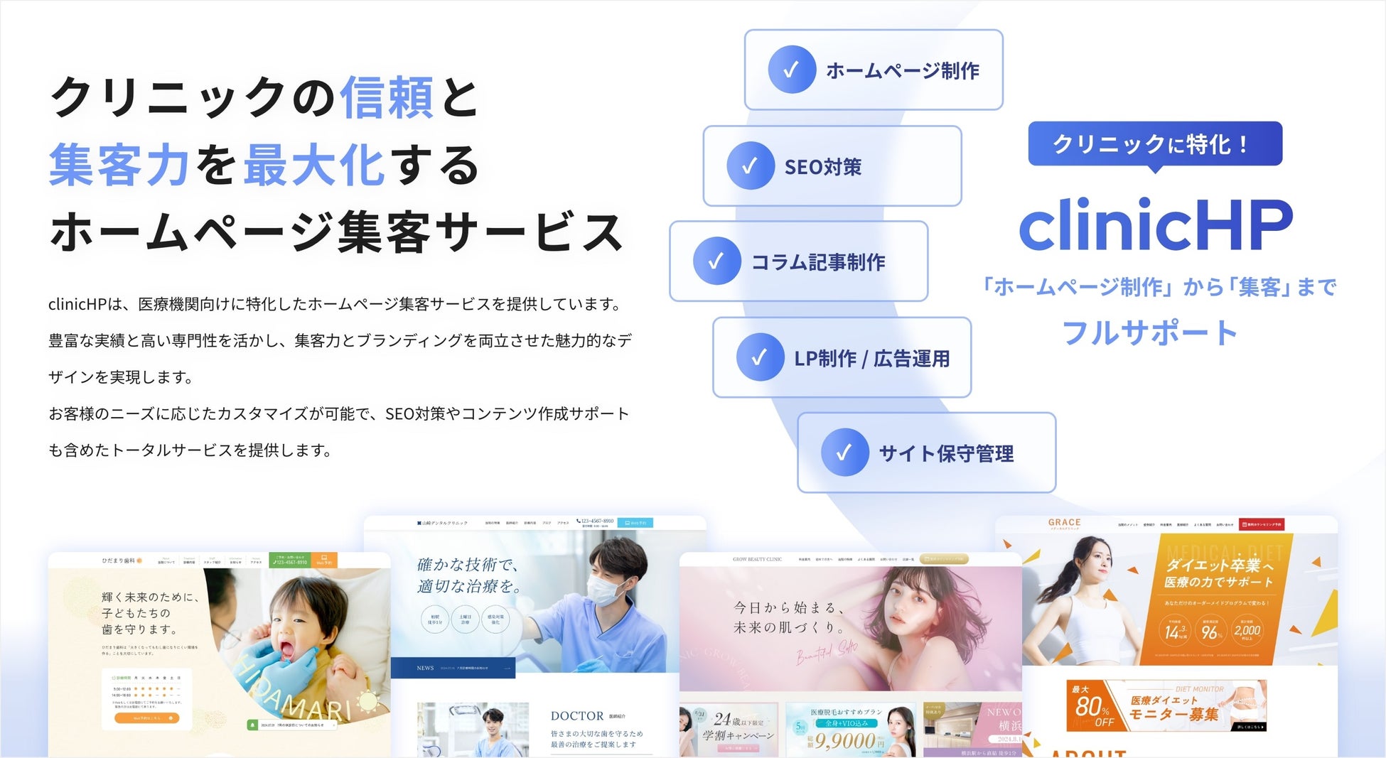 株式会社NOBUは、クリニック専門のホームページ制作サービス「clinicHP」を正式にリリースしました。clinicHPは、医療機関向けに特化したWeb集客サービスを提供し、集客力とブランディングを両立した高品質なデザインを実現します。
