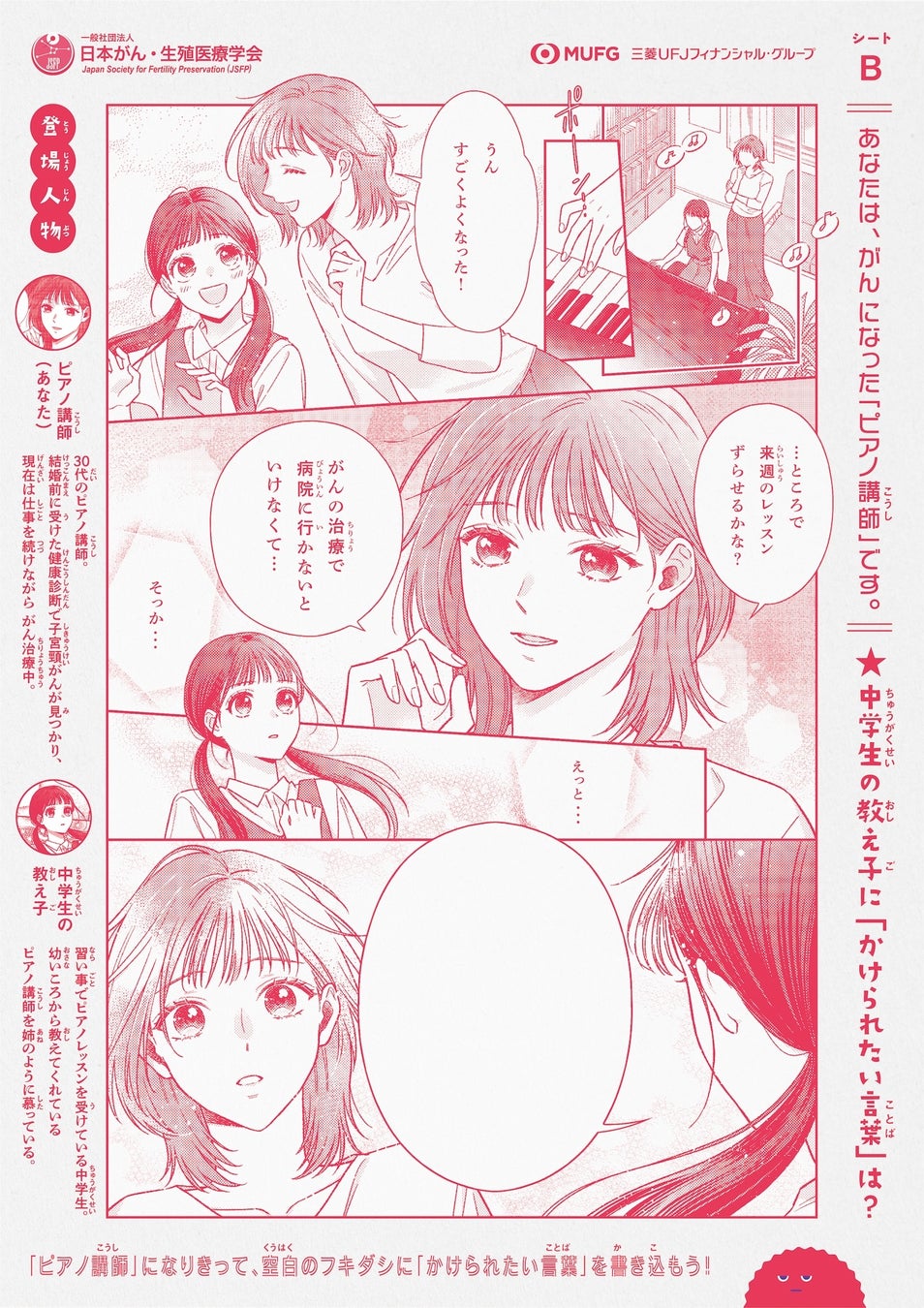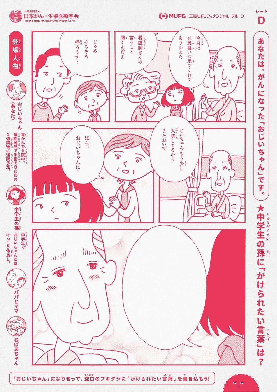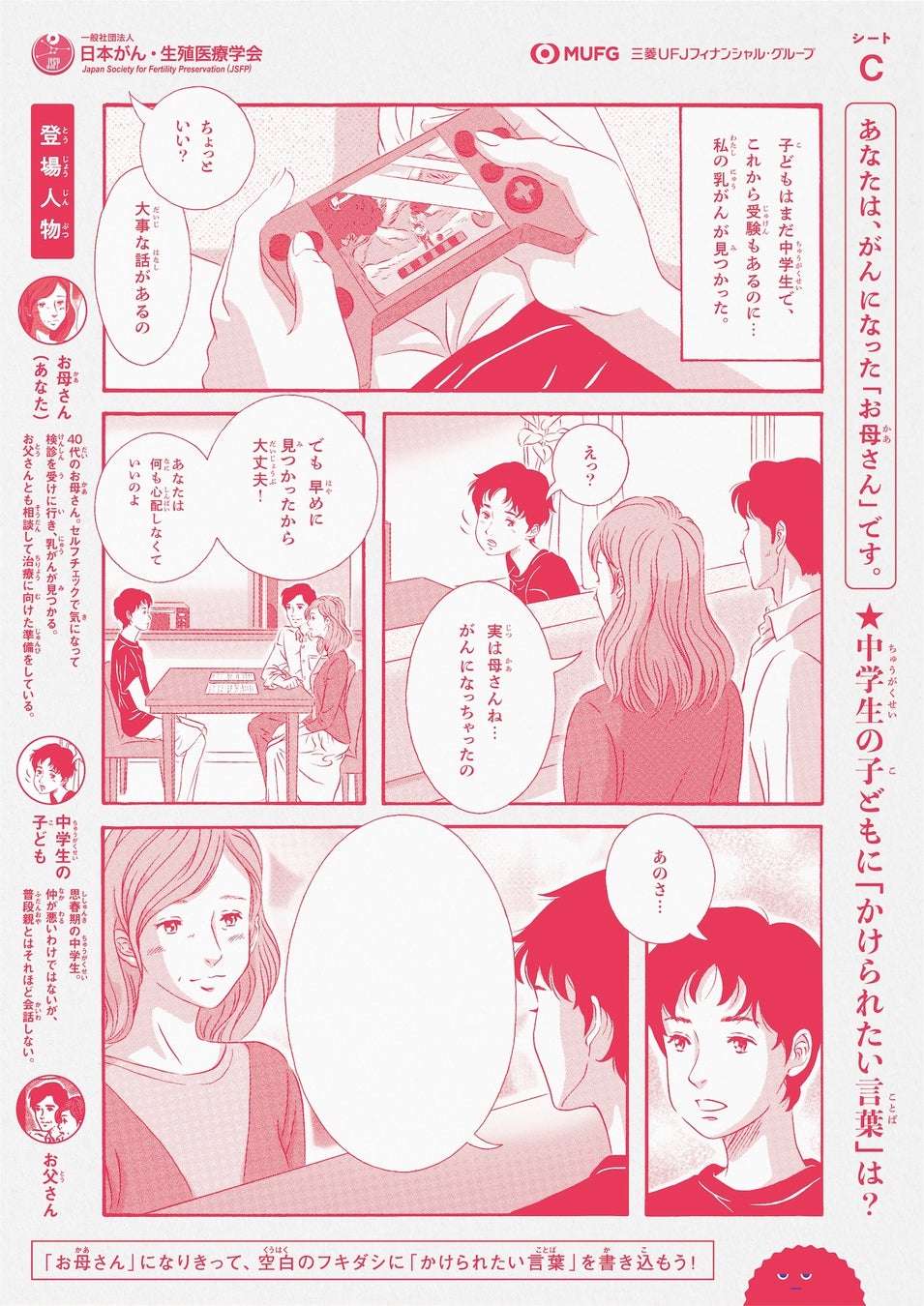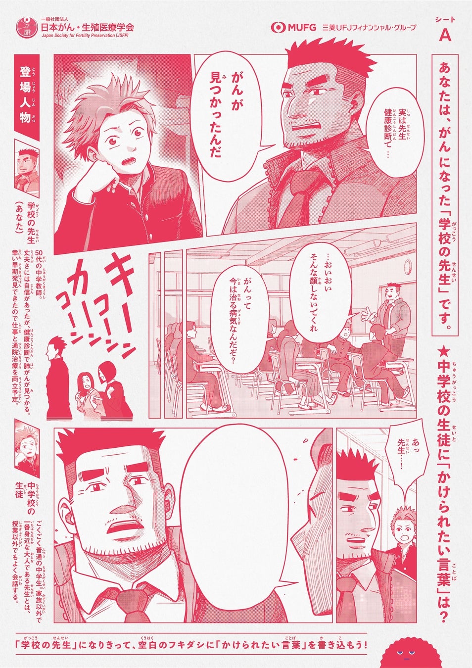 がんになった自分を想像して「かけられたい言葉」で空白のフキダシを埋めるがん教育用教材『未完成マンガ』をワールドキャンサーデー2/4(火)に公開