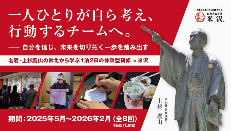 当研修ツアーでは、上杉鷹山の信念と行動から現代企業へのヒントを学ぶ講義に加え、地域の食文化を通じた未来志向の考察や、市内企業の訪問などを実施。「自分を信じ、あきらめずに行動する」—そんな“自力本願”の姿勢を、体験を通して育みます。