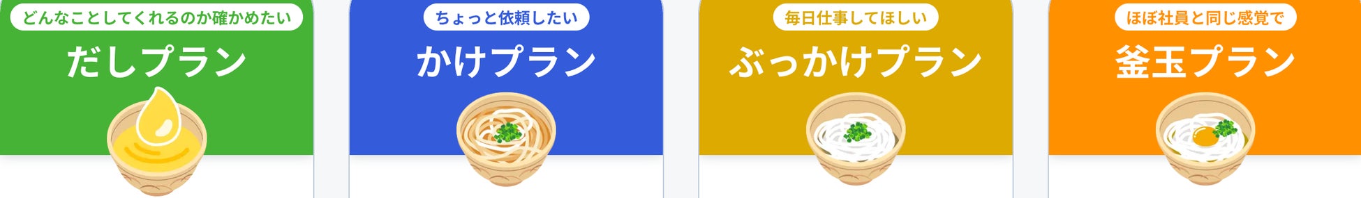 かけプラン、ぶっかけプラン、釜玉プランの3つをご用意しております。