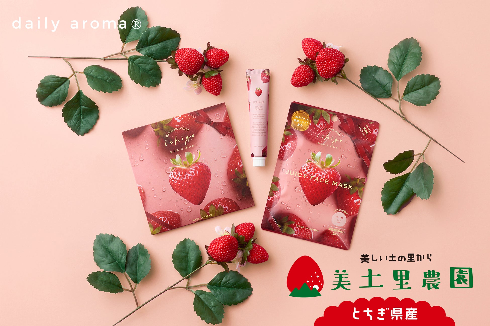 スキンケアからボディケアまで、いちごの恵みを活かした3アイテムが登場! 栃木・美土里農園とデイリーアロマジャパンのコラボで実現した、日本製×アップサイクルのエコな取り組み。