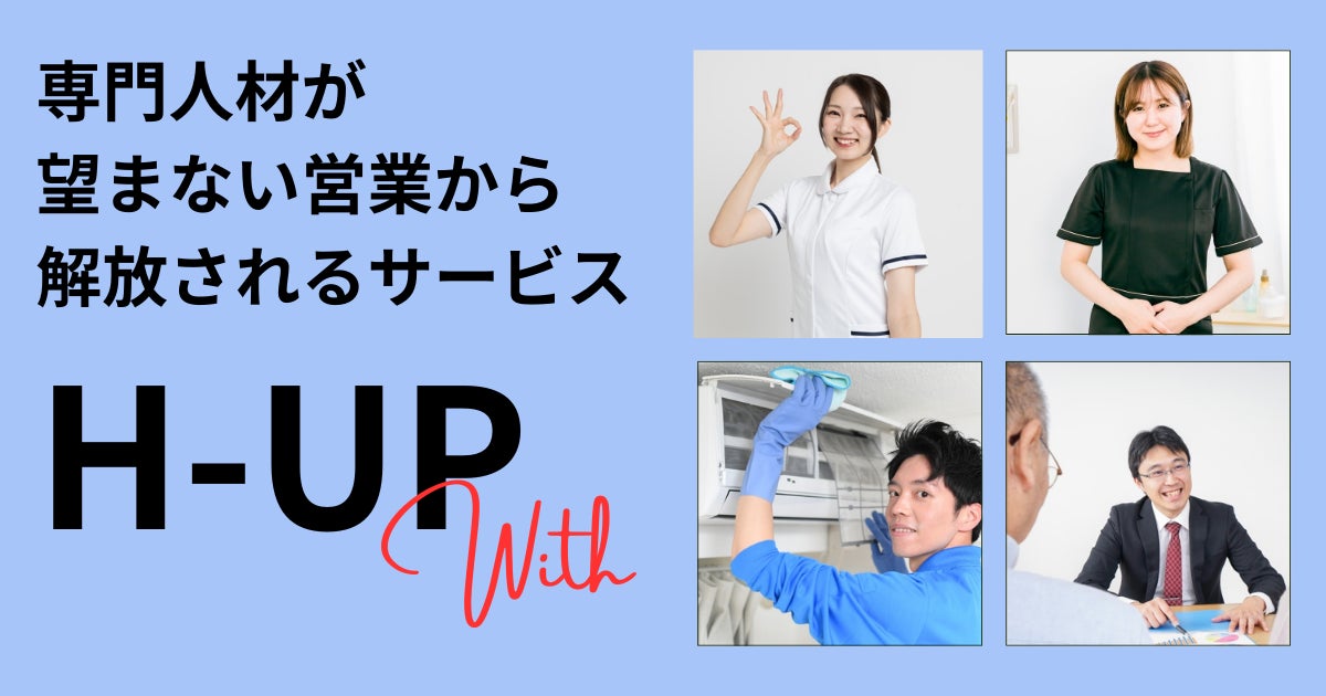 株式会社H-UP(代表:簡野 光)は、クリニックや美容品販売・カーディーラーなど専門職が本来の業務に専念すべき現場で、追加の営業業務・顧客対面が大きな負担となっているという課題に着目。さらに、営業育成や即戦力となる人材の確保に悩む企業のニーズに応えるため、新サービス「H-UP With」を正式にリリースいたしました。