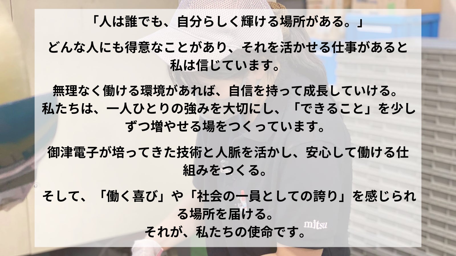 「障がい者の可能性を引き出し社会と繋ぎ新たな価値を創造する」
