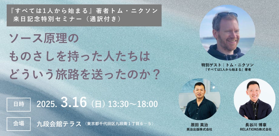 日本の人事部『HRアワード2023』に入賞し、世界的に注目を集める書籍『すべては1人から始まる――ビッグアイデアに向かって人と組織が動き出す「ソース原理」の力』(英治出版)の著者、トム・ニクソン氏の来日が2025年3月中旬に決定したことを発表します。