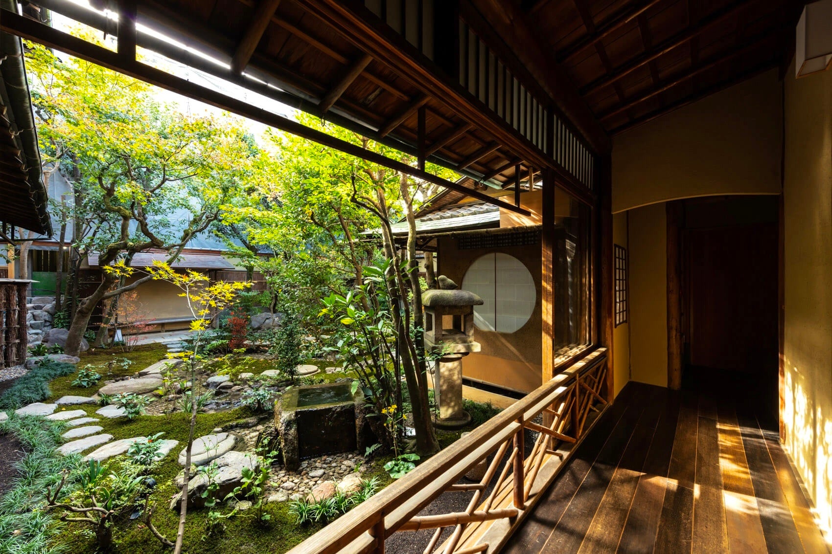 数寄の息吹が感じられる本館は、意匠を大切に残しながら、ホテルとして心地良く寛げる空間へと改装。伝統的な茶会「祇園献茶祭」の場としても使用されていたこともある歴史ある茶室付きのユニークな客室や、壁に数寄屋建築ならではの名栗が施された部屋などからお選びいただけます。